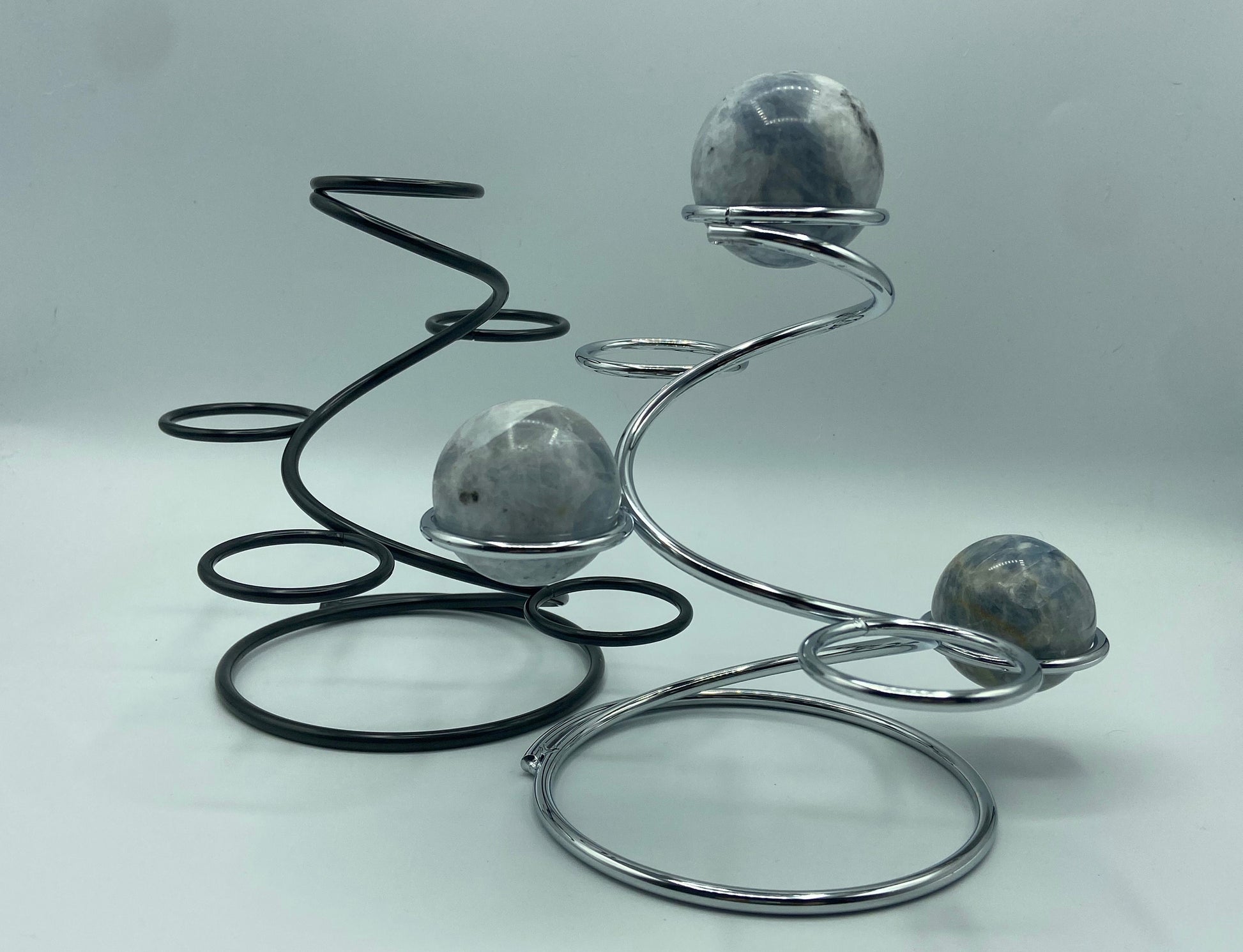 Beautiful and sturdy 5 sphere/ornament display stand, for 50 mm (2-inch) spheres, in either a gold, rose gold, black or silver finish.