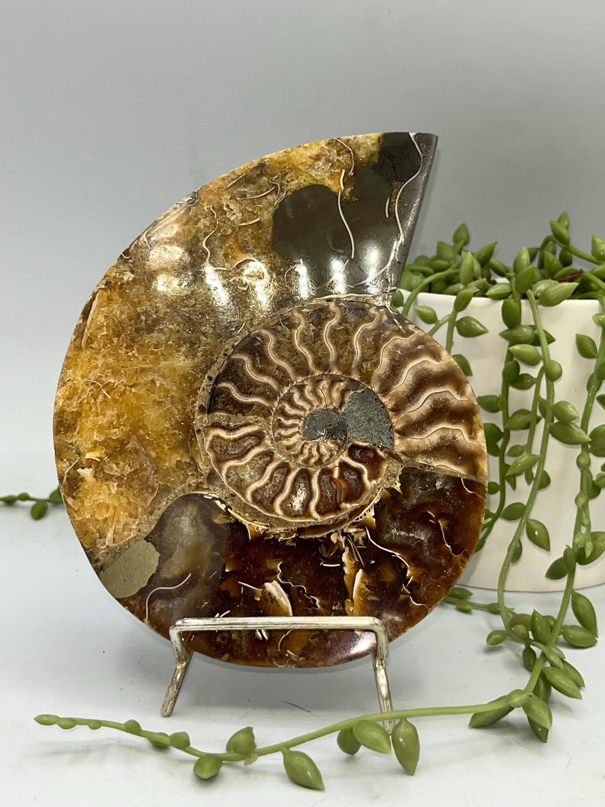 Beautiful Ammonite shell from Morocco. Spiral Shell Ammonite, Polished Half Shell Ammonite