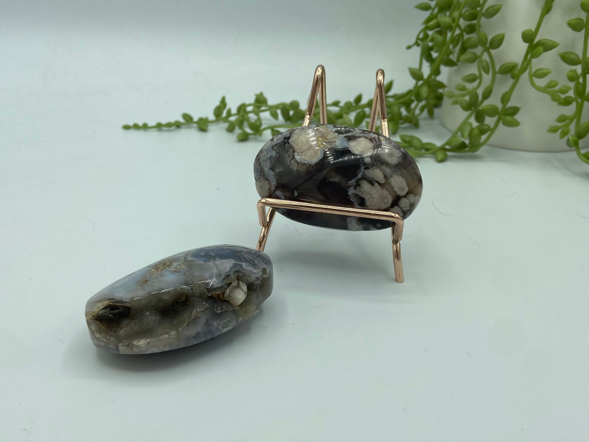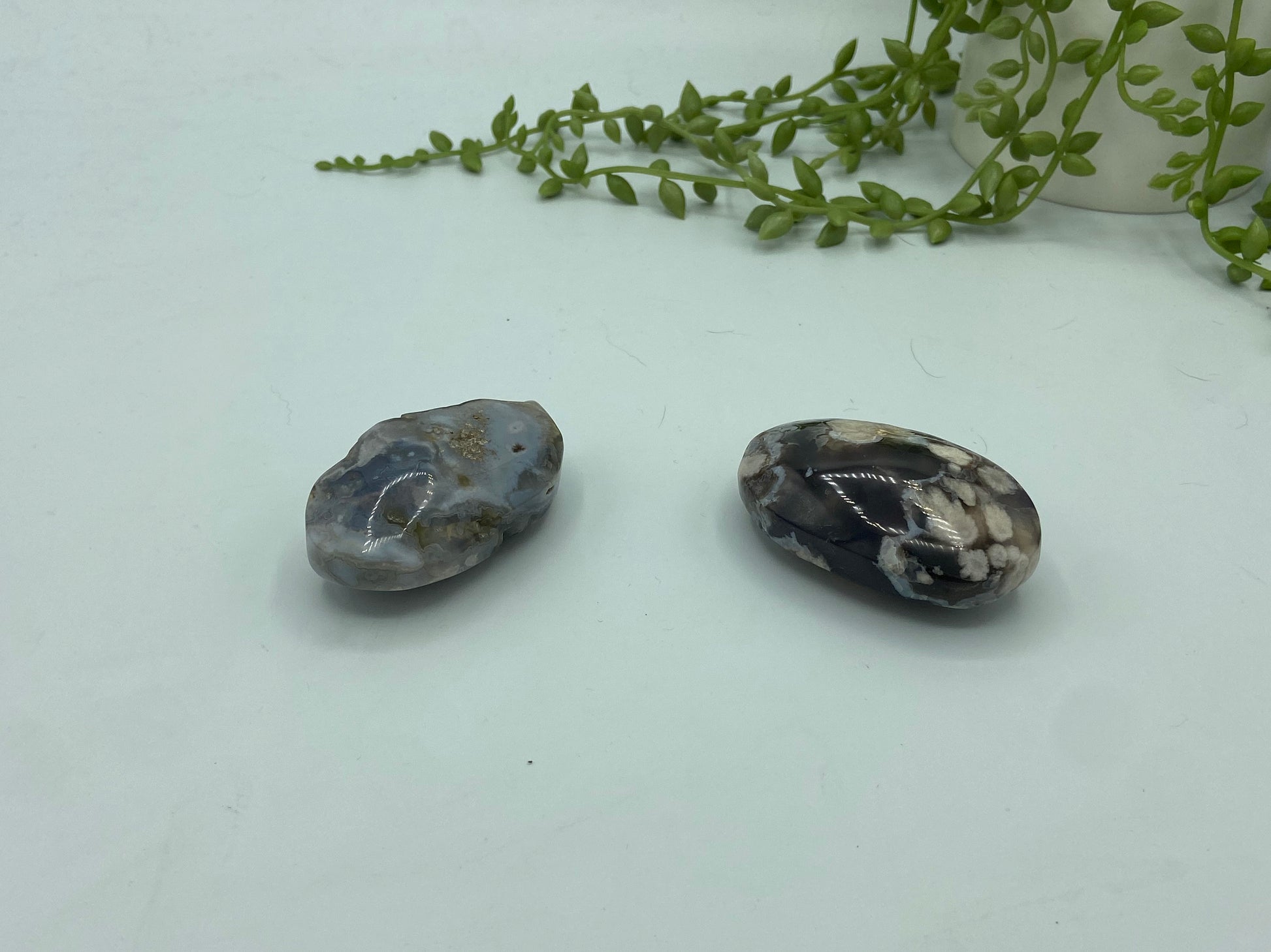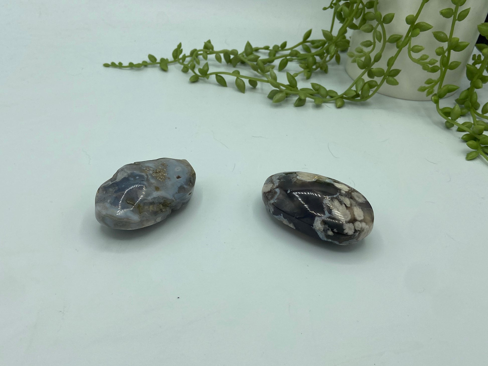 Flower Agate has a peaceful, beautiful feminine energy which can be seen & felt within the cascading blossoms within dreamy chalcedony swirls.