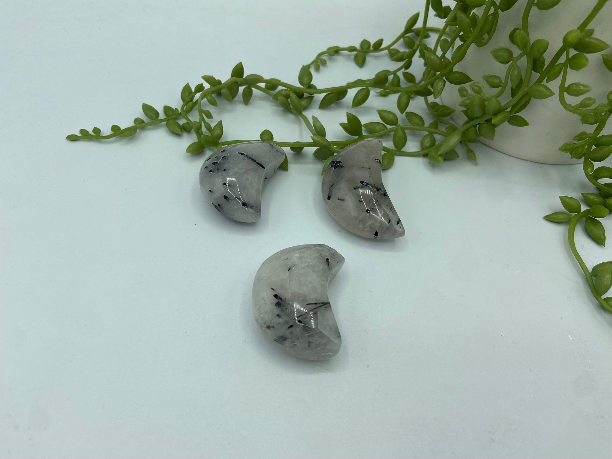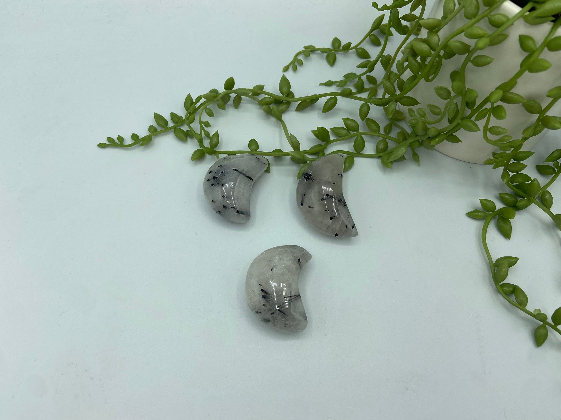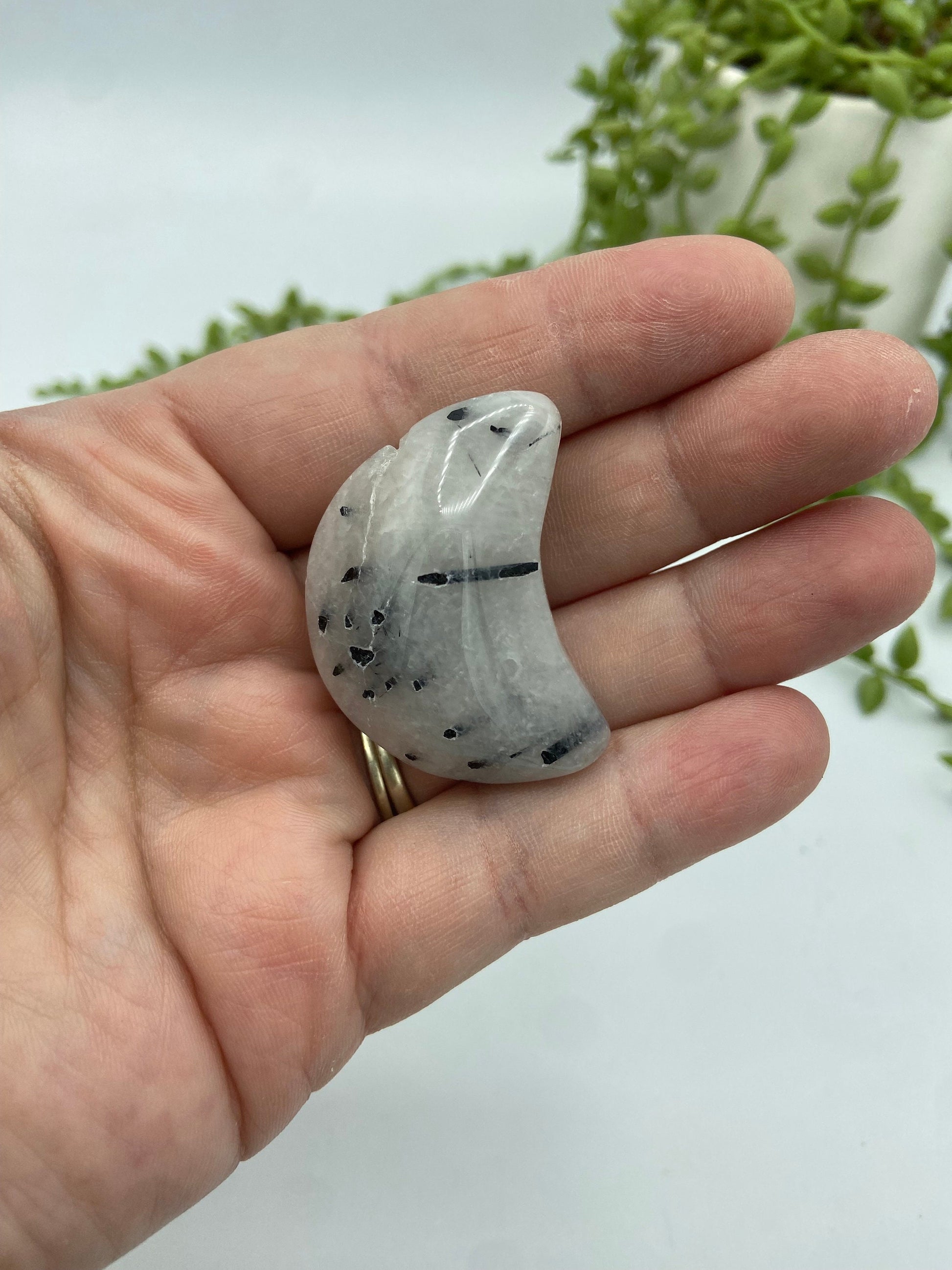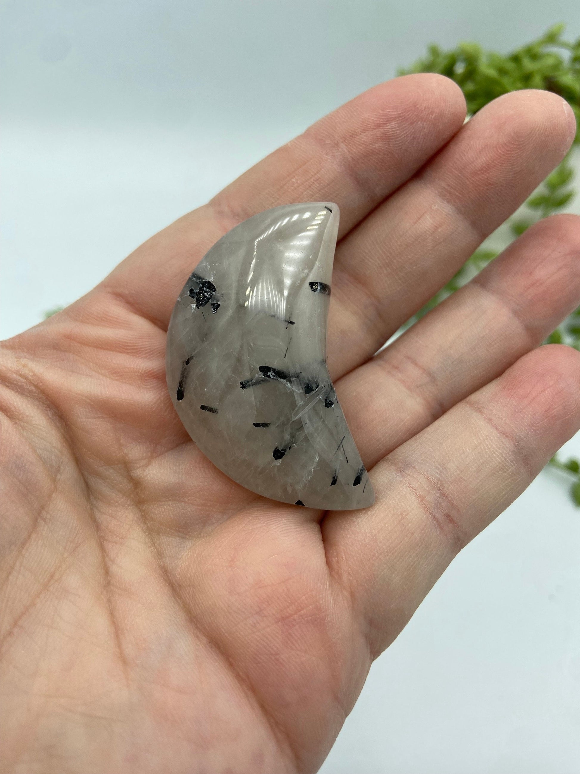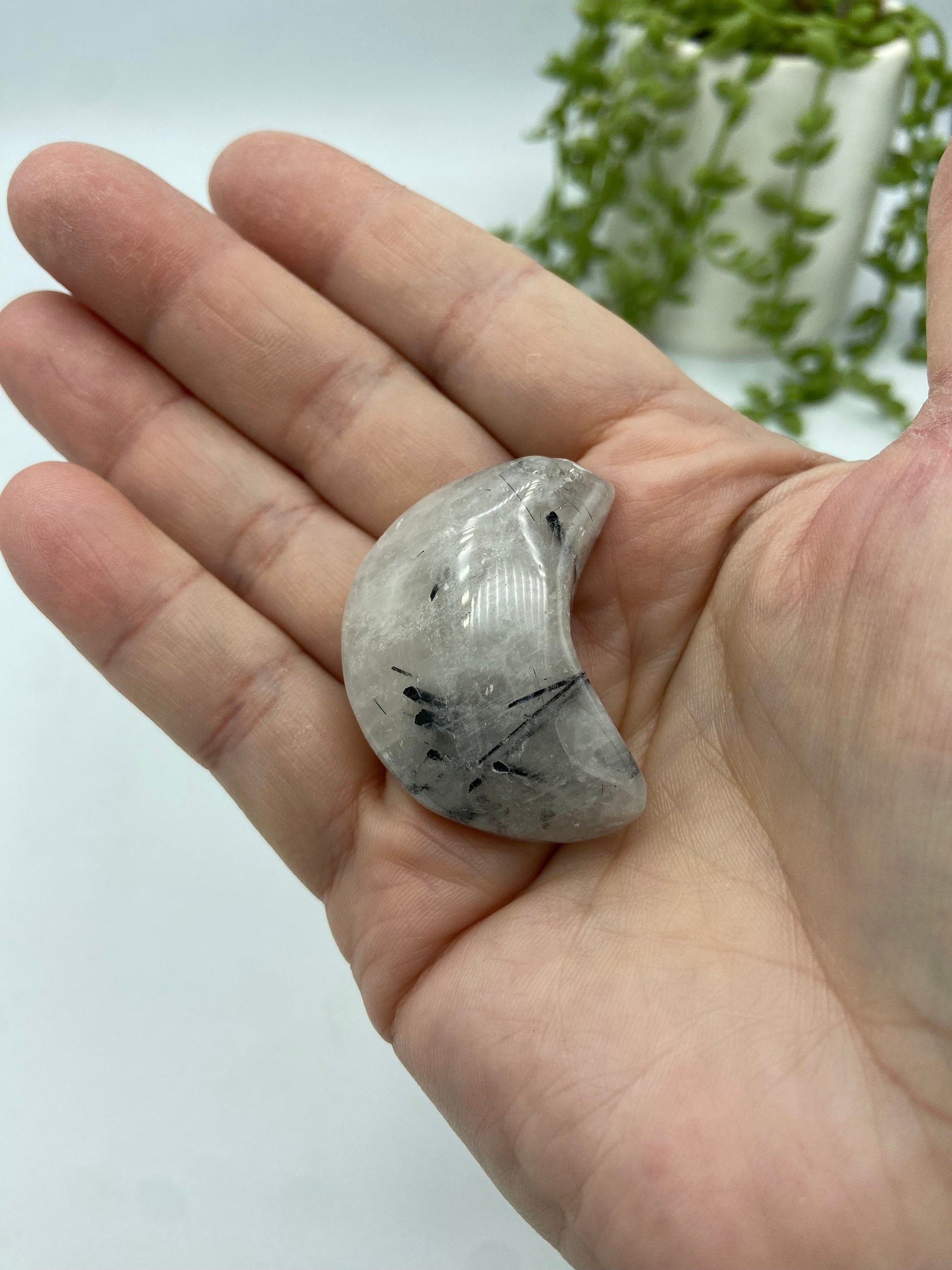 Black tourmaline in quartz puffed moon, tourmaline, quartz, Crystal moon,