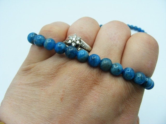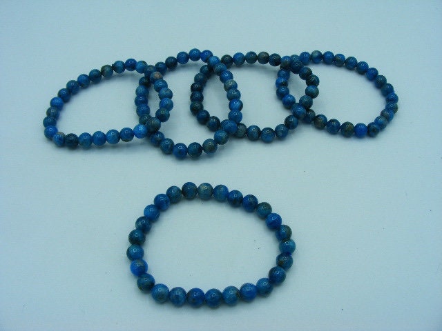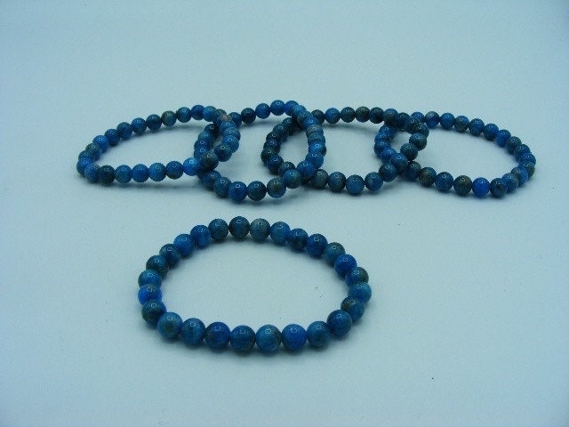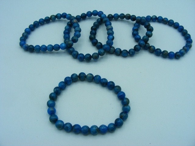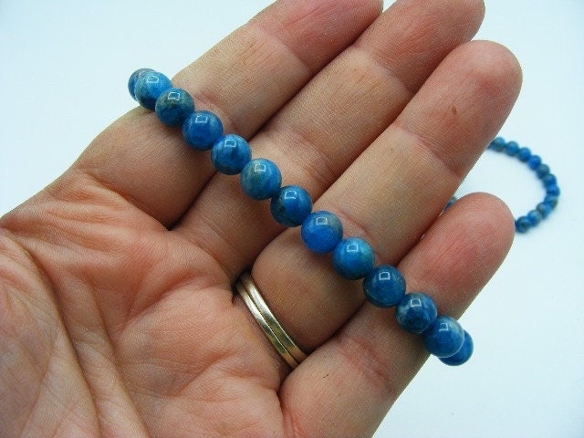 Blue Apatite Gemstone 6mm Bead Bracelet. Handmade Jewelry, Healing Crystal Bracelet
