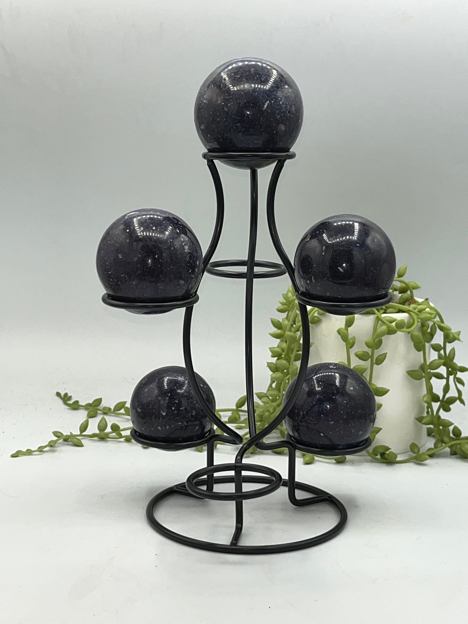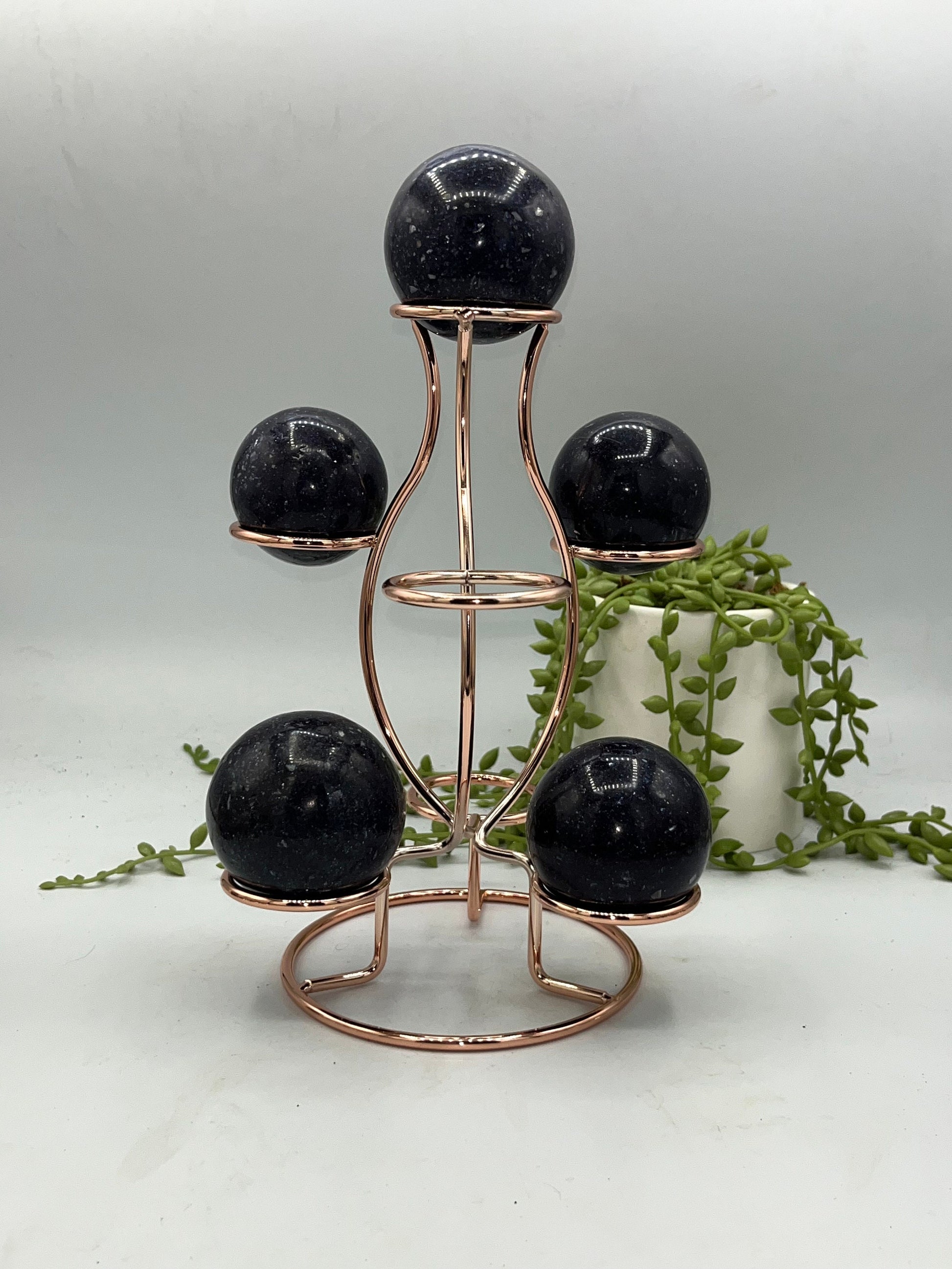 Beautiful and study 7-ornament/sphere display stand, for up to 70mm spheres, in either a gold, rose gold, black or silver finish.