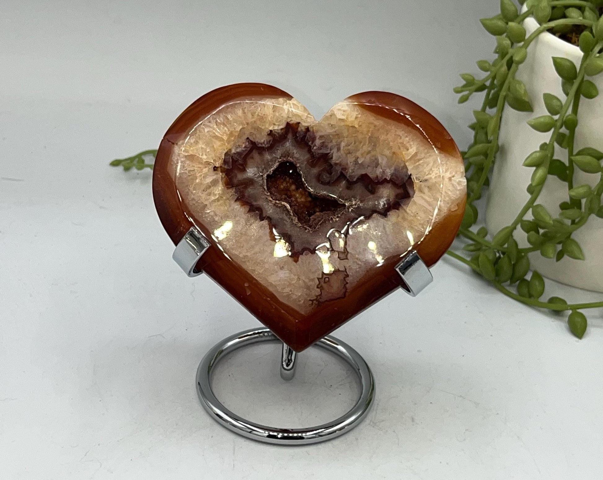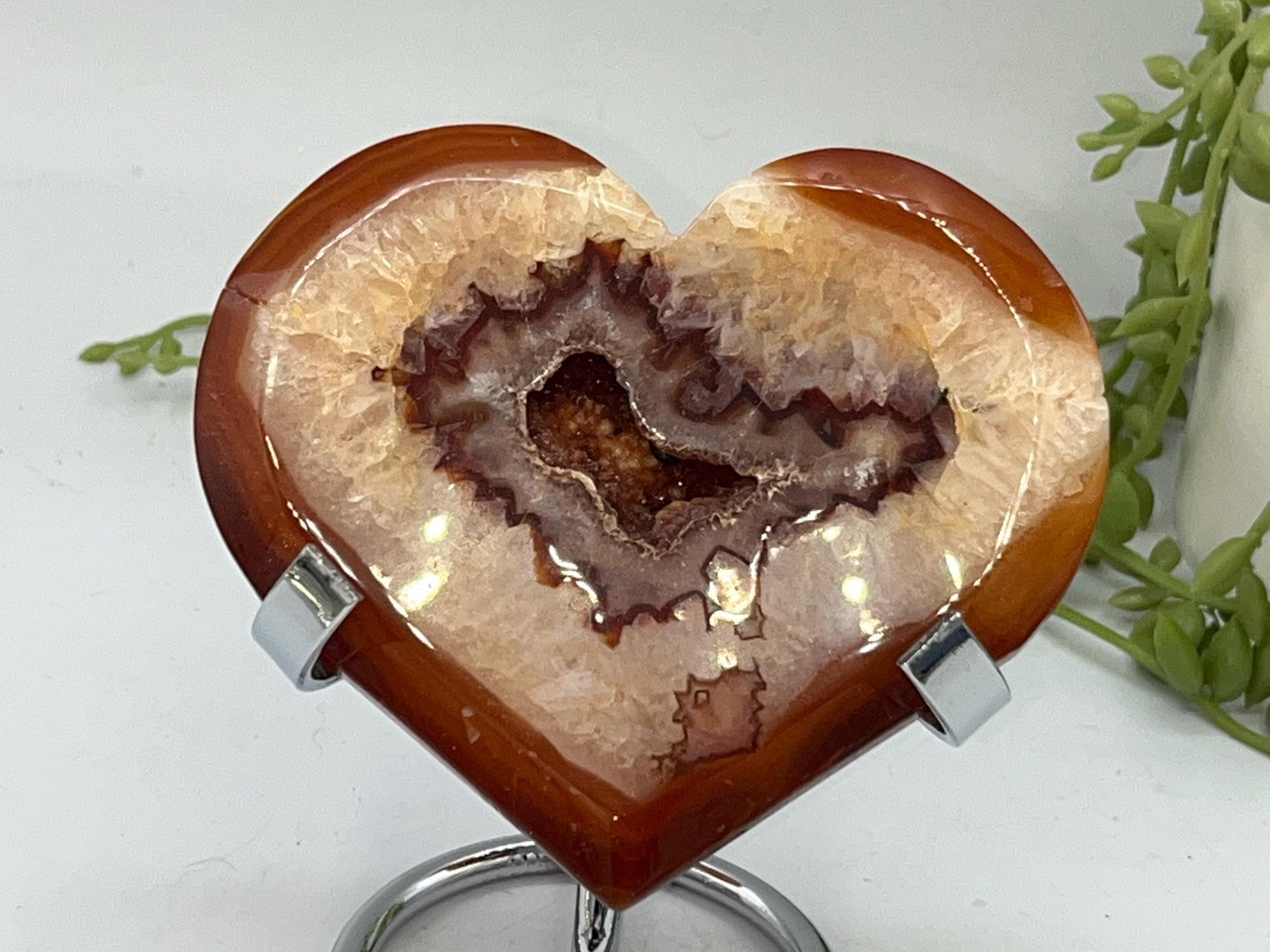 Carnelian Heart (C) with Druzy, Carnelian, Crystal Collection, Chakra Stones, Orange, Red Crystals, Carnelian Flat Heart, Drusy Carnelian.