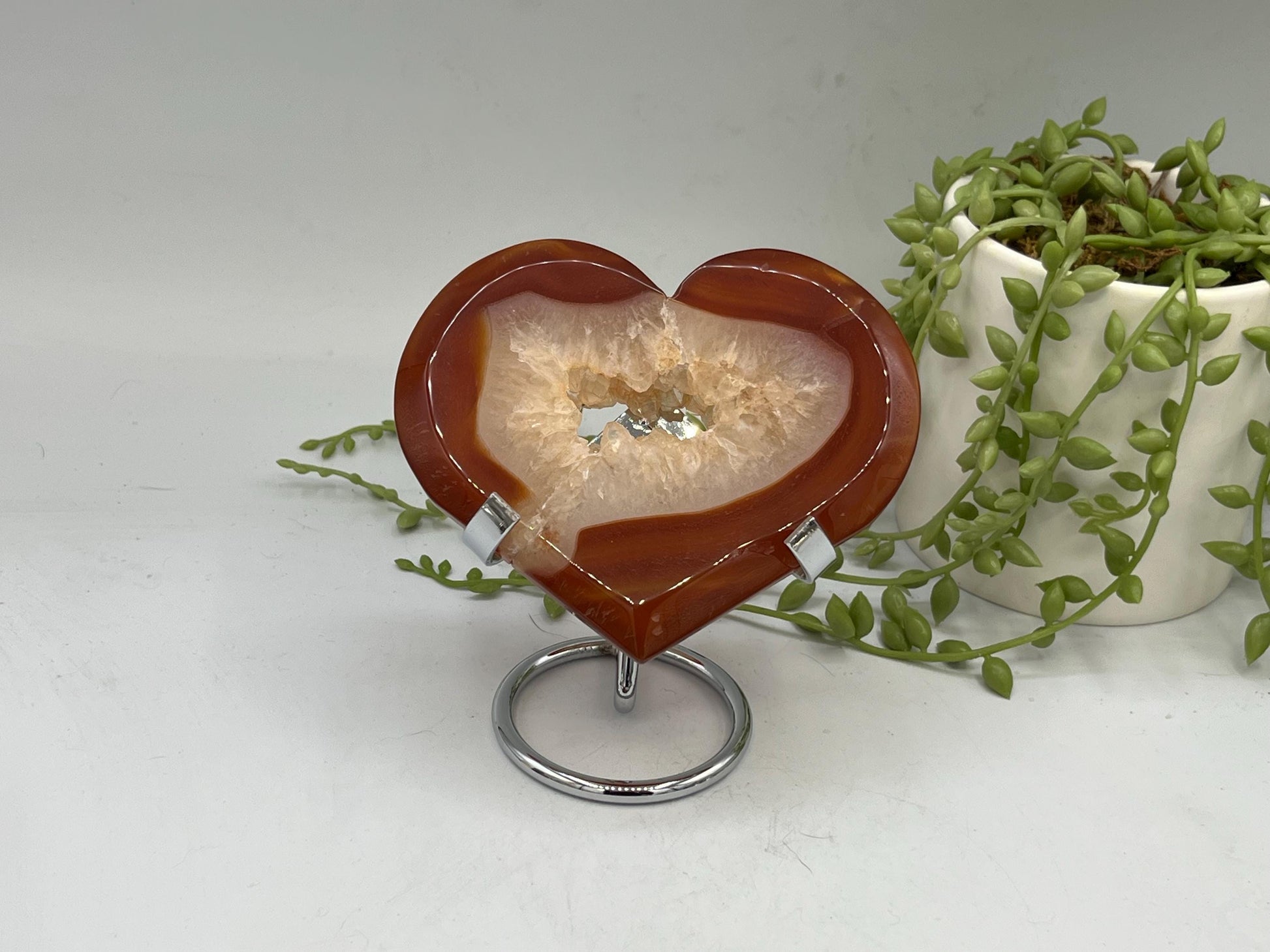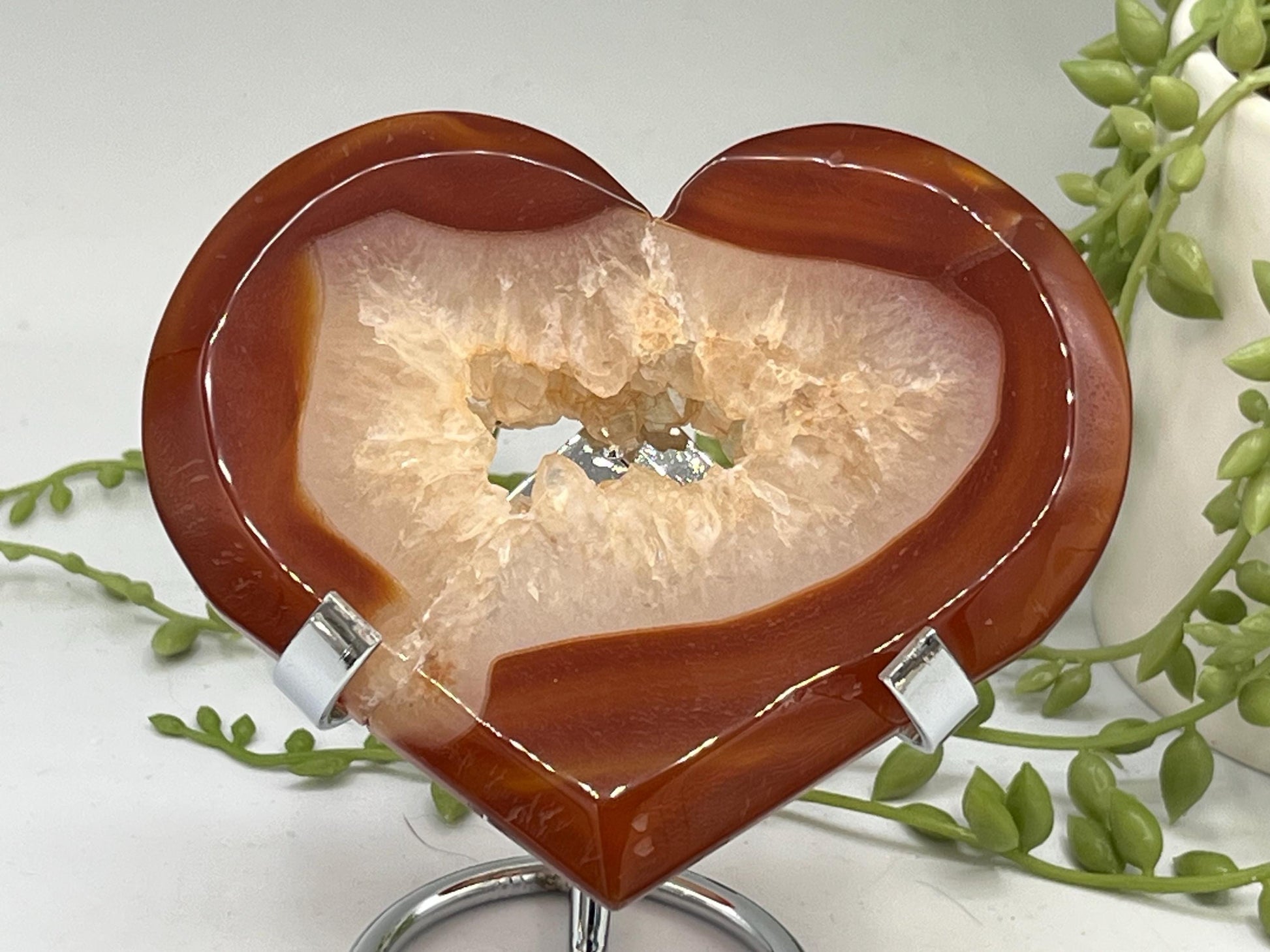 Carnelian Heart (E) with Druzy, Carnelian, Crystal Collection, Chakra Stones, Orange, Red Crystals, Carnelian Flat Heart, Drusy Carnelian.
