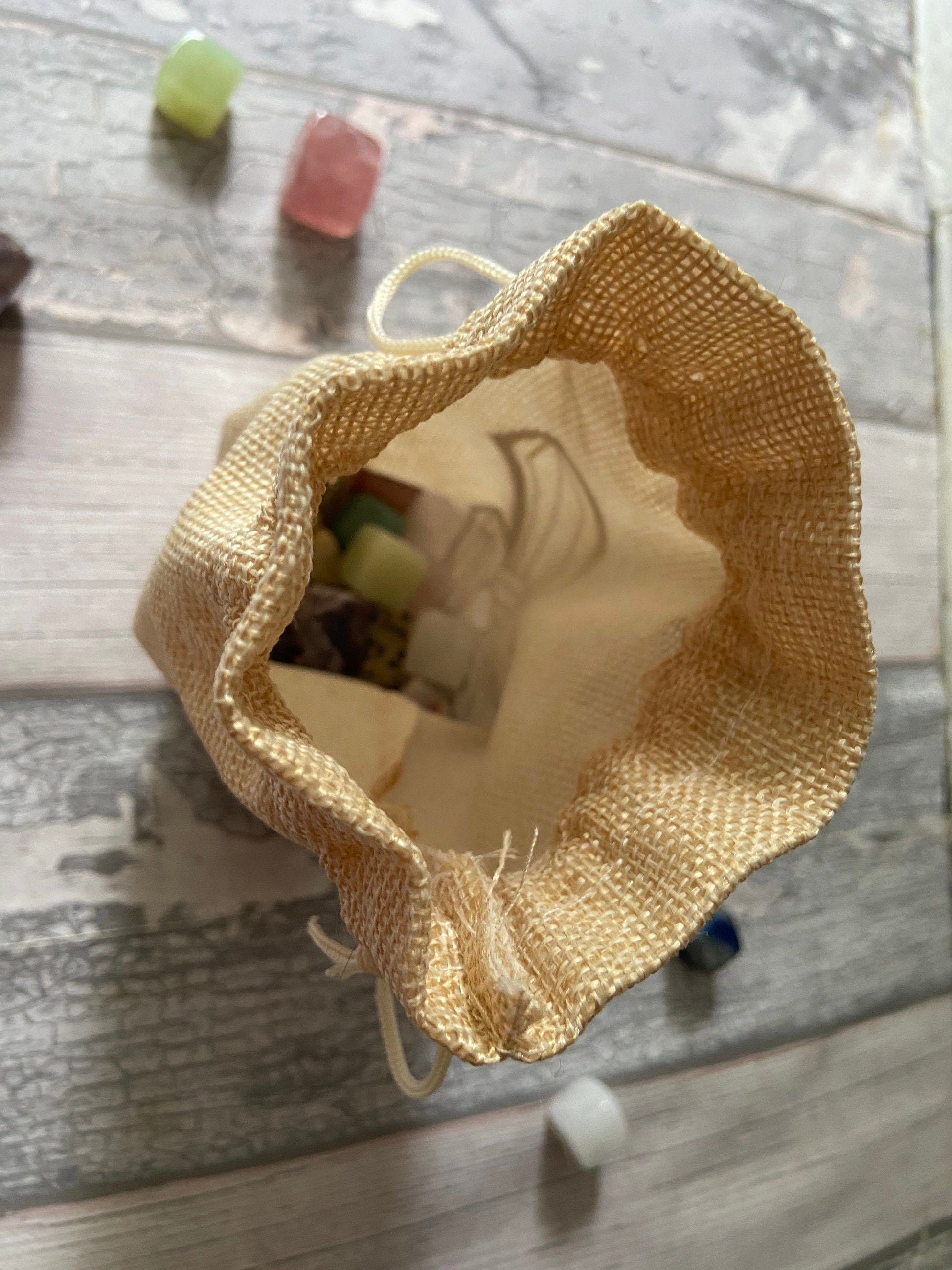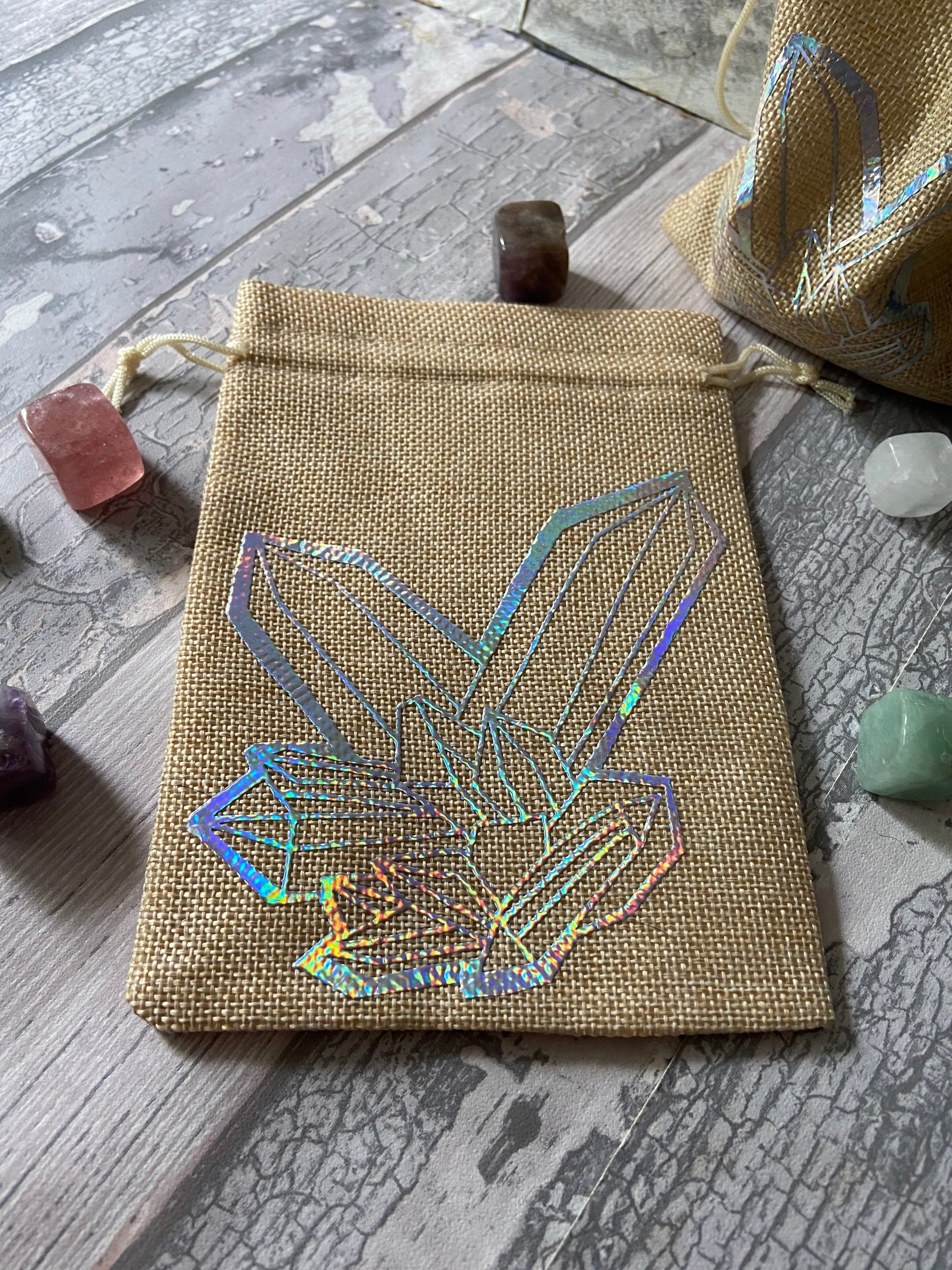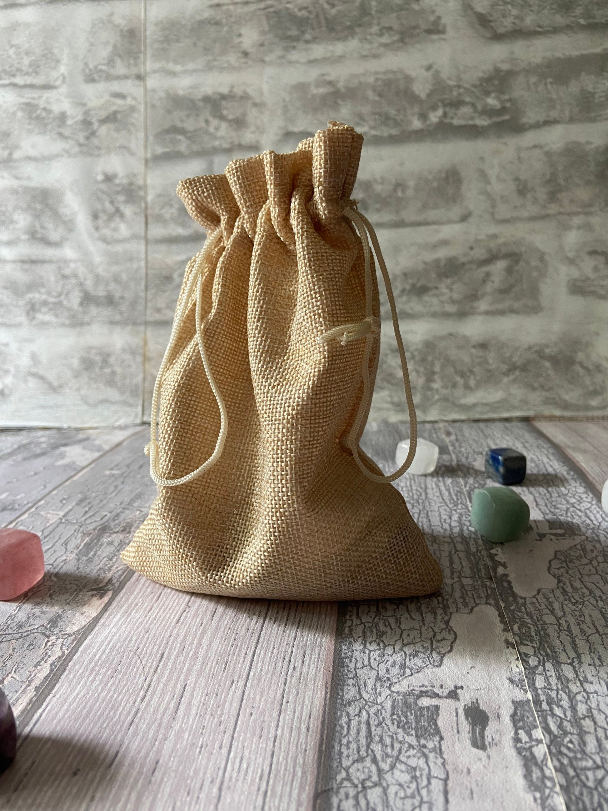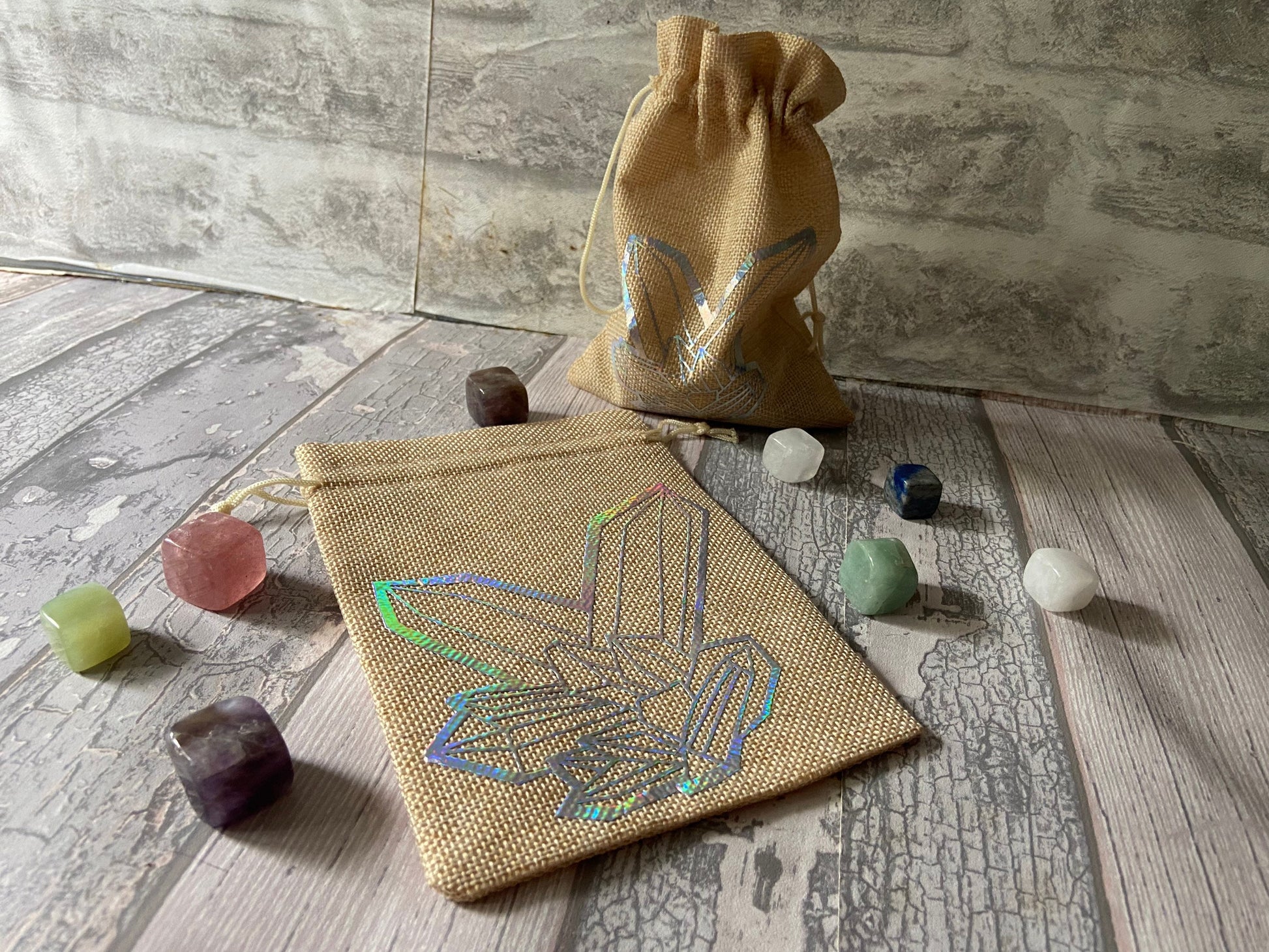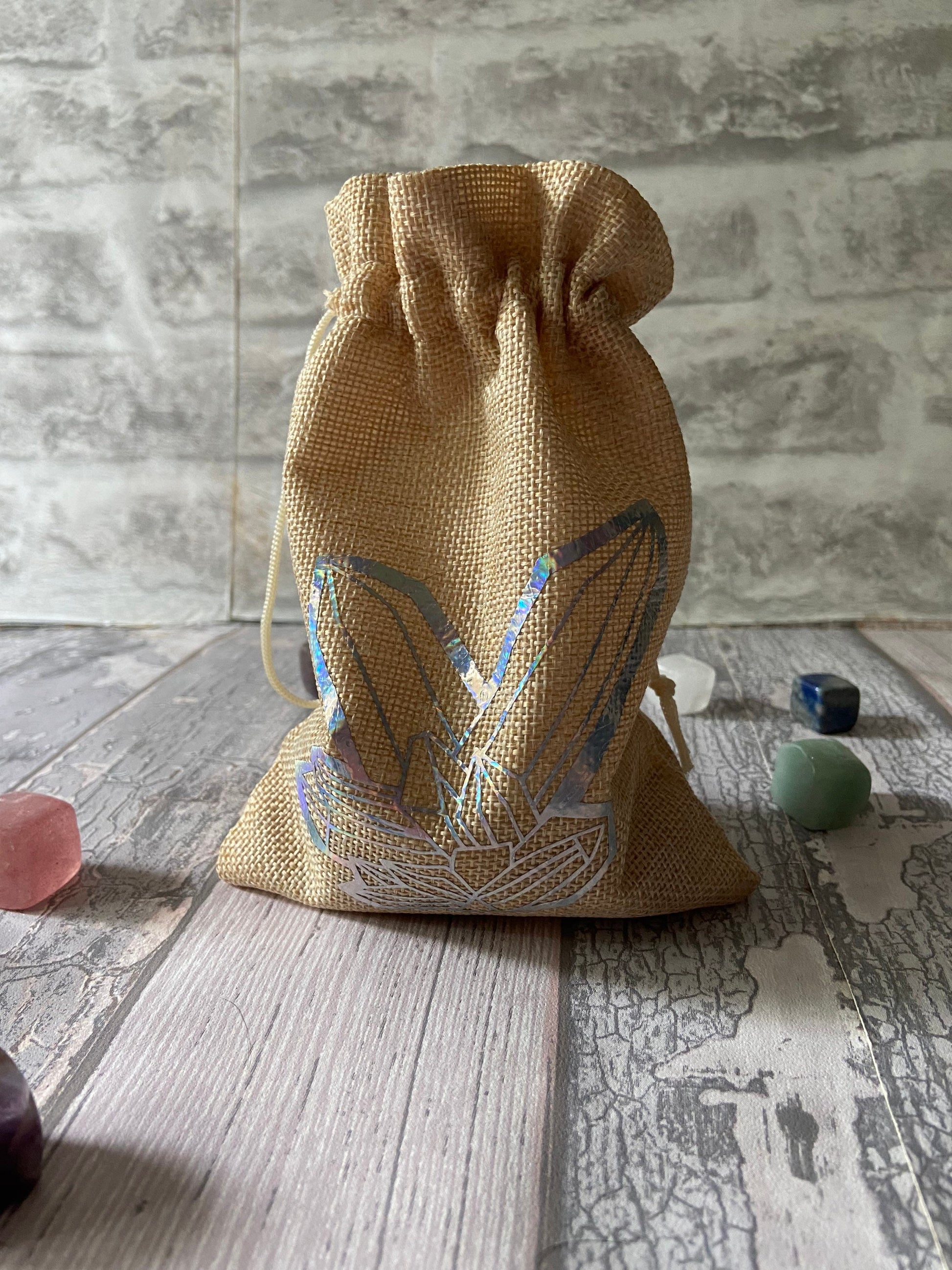 Crystal pattern crystal bag, Crystal storage, drawstring jute hessian bag, Reiki Crystal pouch, Crystal travel bag,