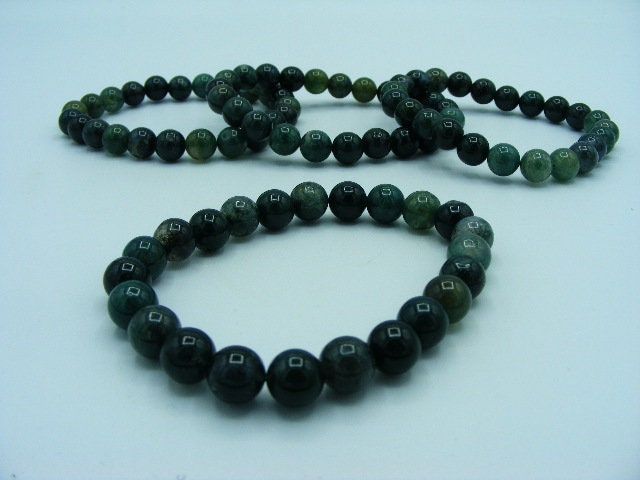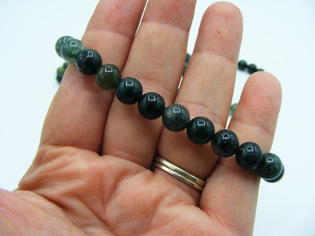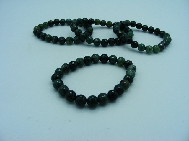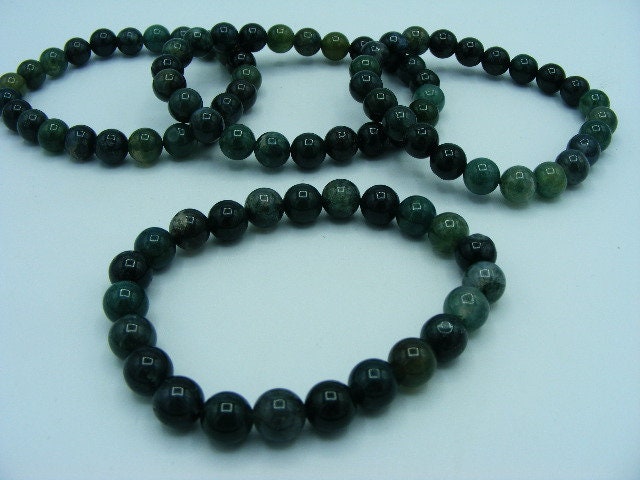 Deep moss agate beaded bracelet, top quality moss agate, healing bracelet, 8mm beads, deep green moss colour