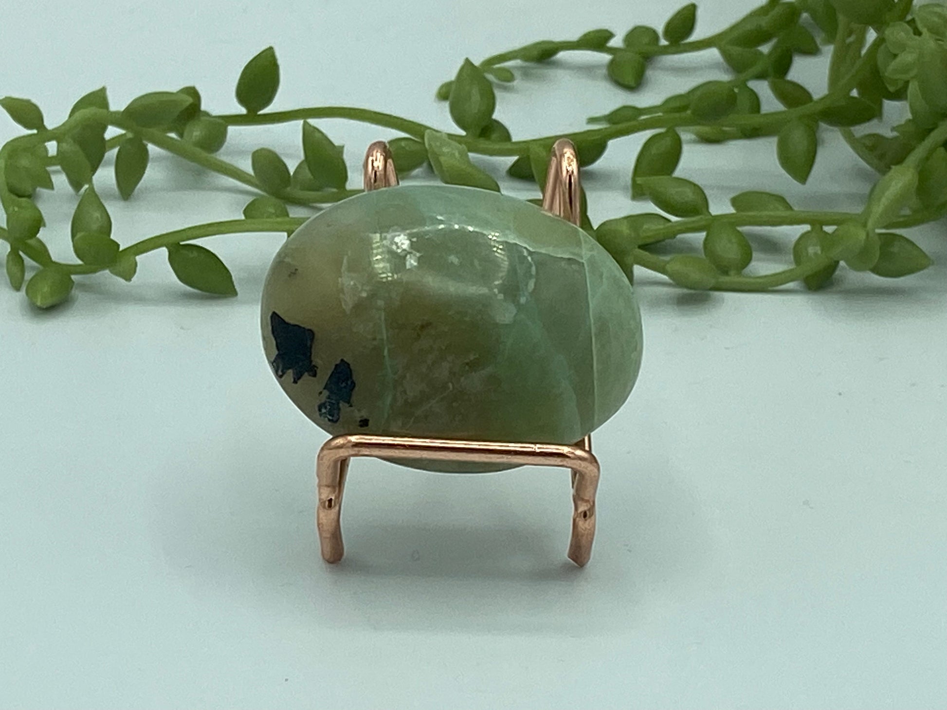 Green Moonstone brings us many traditional links to the moon and to all feminine values. It is especially good for helping us to connect with the medicine of the Earth and Moon. It enhances our psychic abilities and helps us to develop the skill of clairvoyance. It also helps us to appreciate the never-ending cycles of life and to better understand that as each end comes to fruition, so a new beginning takes place. Green Moonstone has also been called "The Stone of The Goddess" and helps us to tap into that feminine Earth energy.