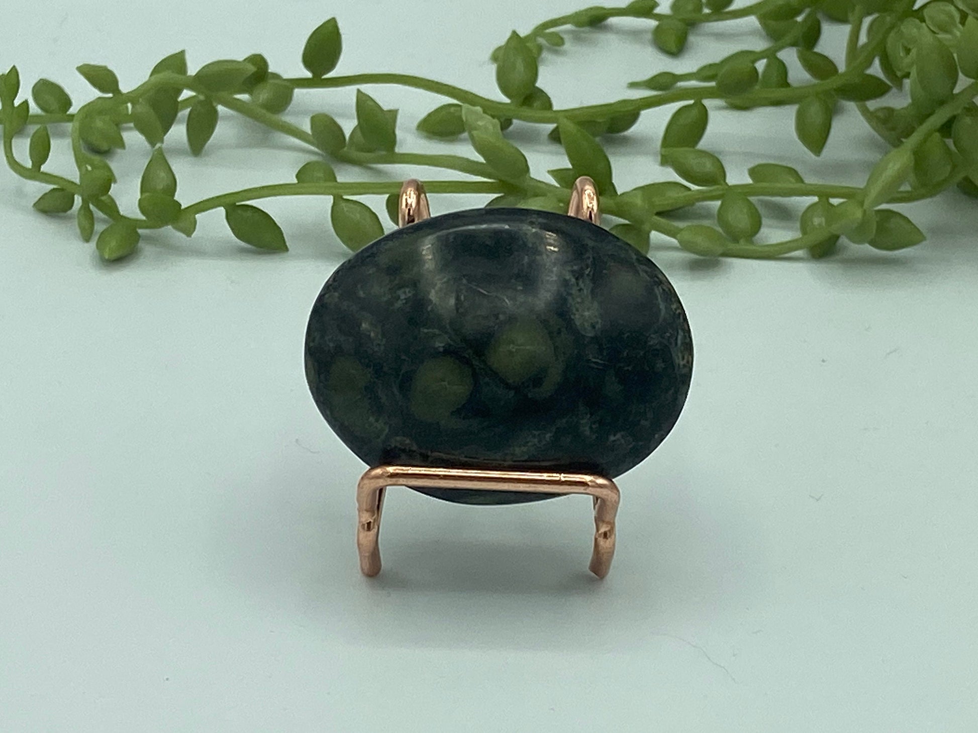 Kambaba Jasper, also known as Kambaba Stone or Green Stromatolite Jasper, is an extremely old stone dating back to 3 billion years ago. The green and black swirling color pattern can have many experienced crystal collectors confusing this stone with Malachite or Nebula Stone. Kambaba Jasper is actually not a Jasper, but rather a fossil. This stone is classified as a stromatolite, which refers to the clump of fossilized algae that created this mineral. One of the special fossils within Kambaba Jasper is actually Cyanobacteria, which is believed to have helped create the first oxygen atmosphere here on earth many moons ago. Other minerals within this special combination of stones are usually Quartz, Feldspar, Cristobalite, and Albite. The exact discovery date and locality of this stone is unknown, however it can be found in South Africa, Madagascar, and the small sea in which divides the two. The origin of the stone’s name is also heavily debated, with the leading theory suggesting Kambaba Jasper was named after Cheitharol Kambaba. Cheitharol Kambaba is the court chronicle of the kings of Manipur, India and has been around for thousands of years.
