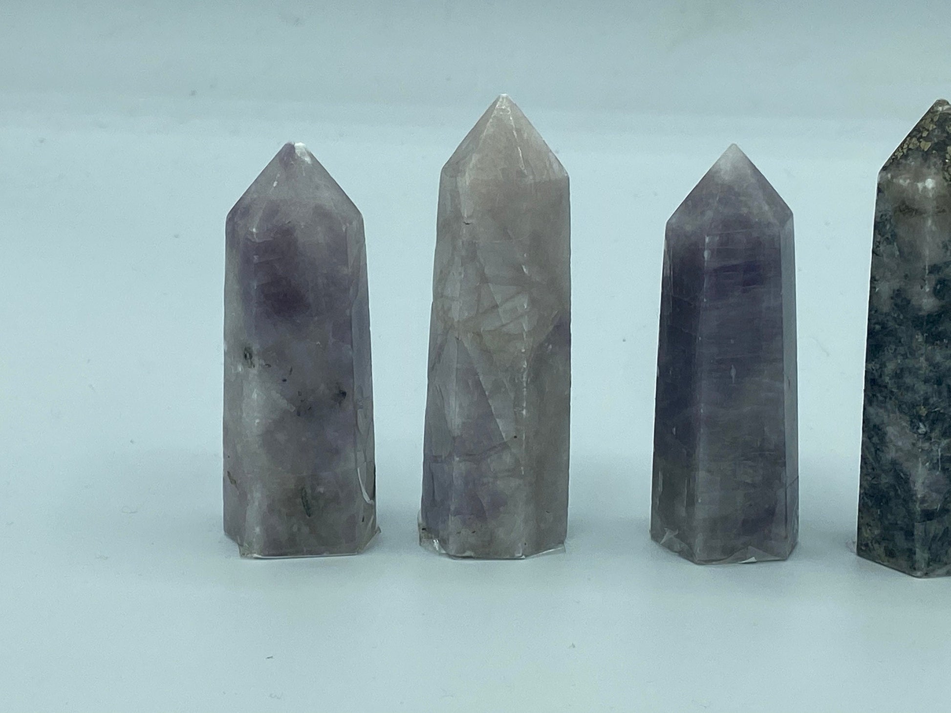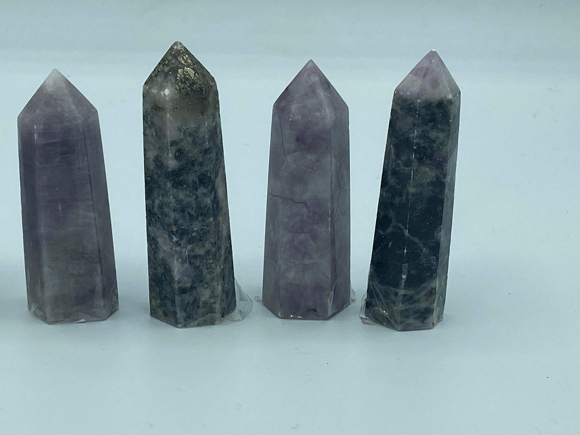 Some of these towers have tourmaline or pyrite inclusions. We have listed which is on each tower to help you pick the one you are drawn to.