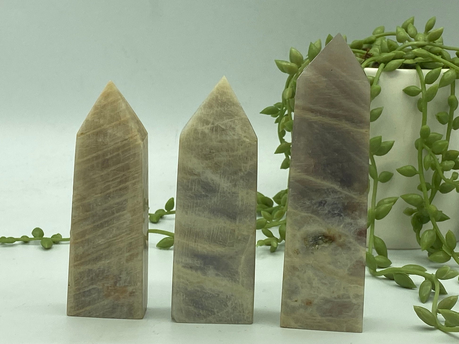 White moonstone with a gorgeous brilliant blue flash tower. These towers have some inclusions of sunstone too.