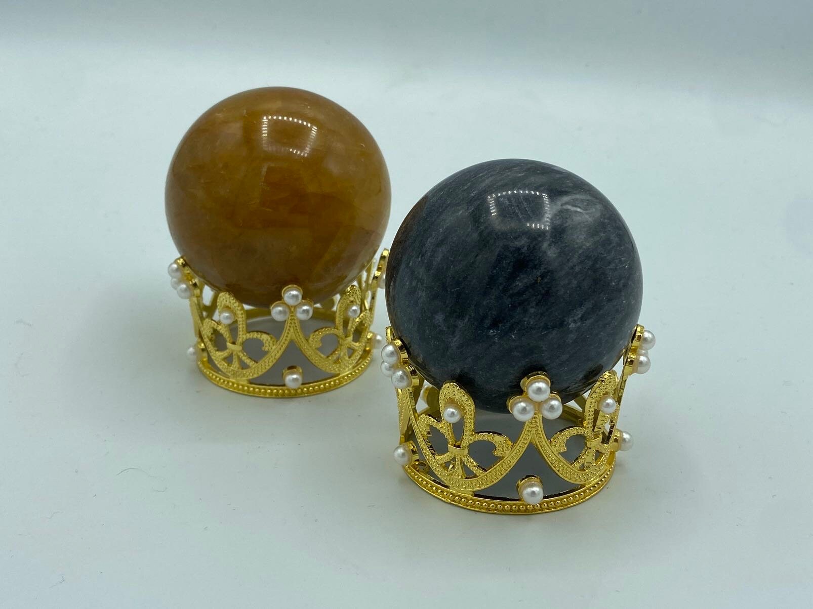 Large Crown Sphere Stand, gold sphere stand, pearl crown.