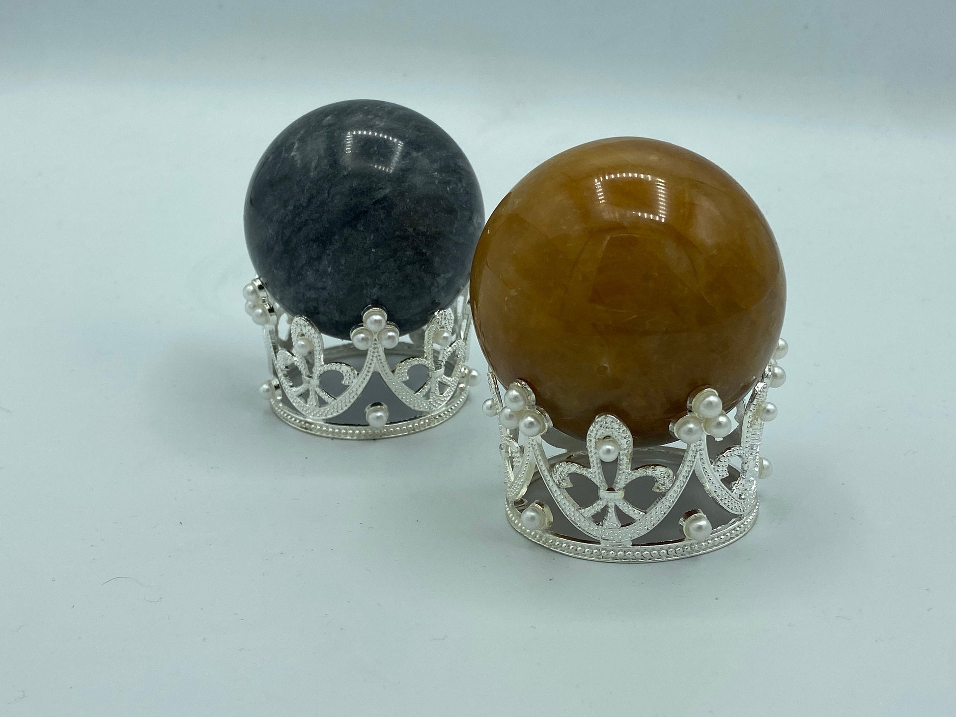Large Crown Sphere Stand, silver sphere stand, pearl crown.