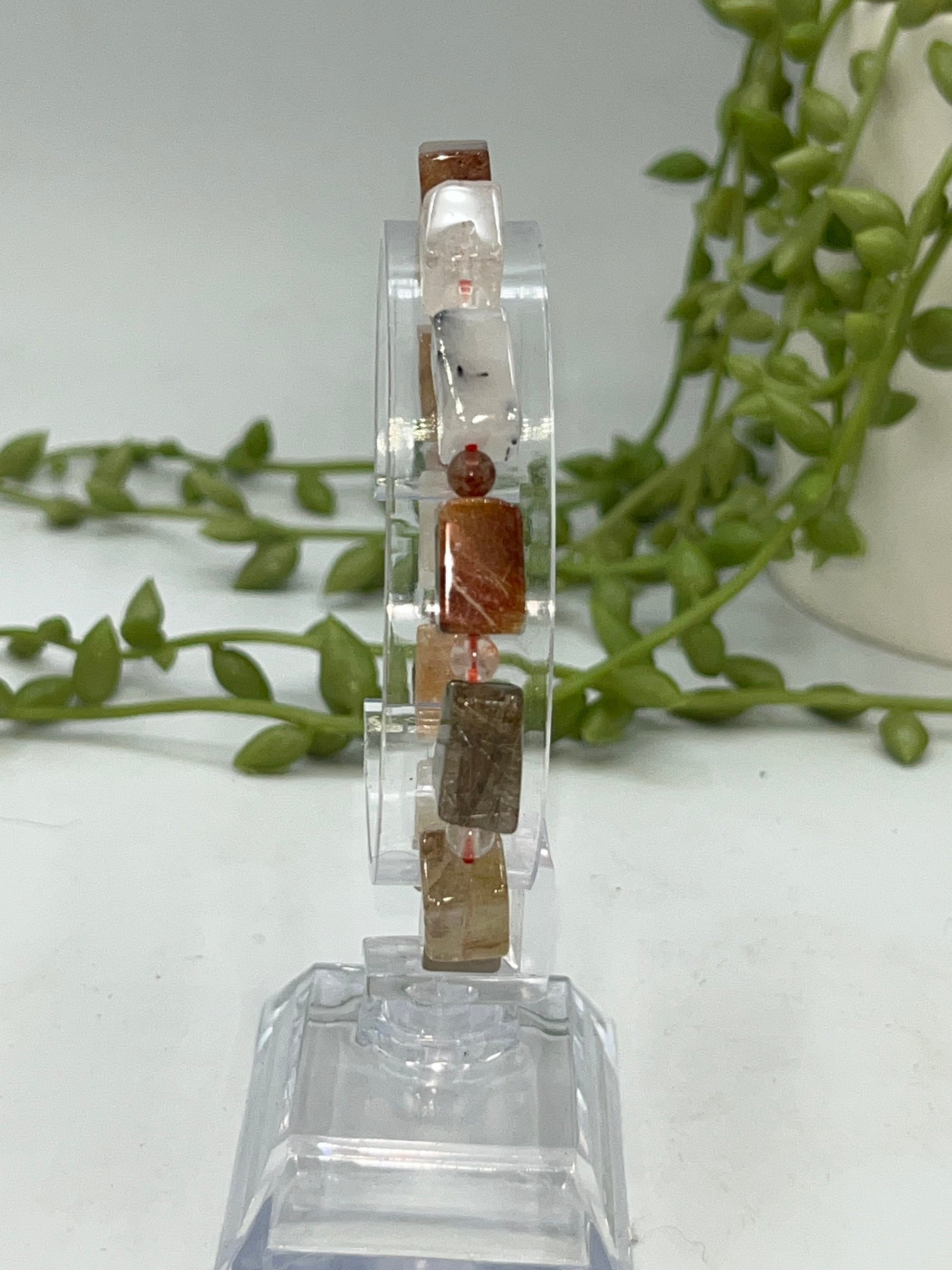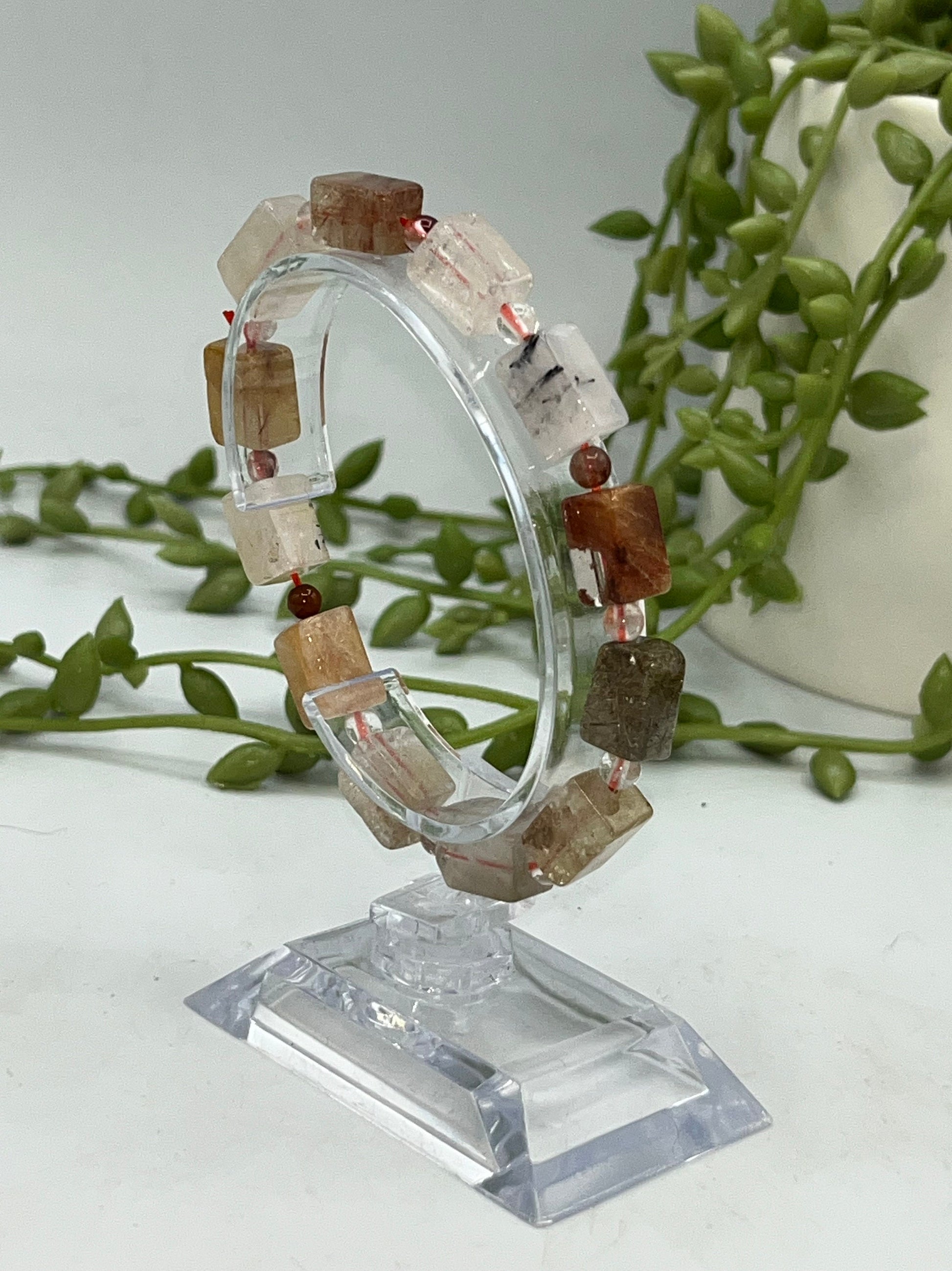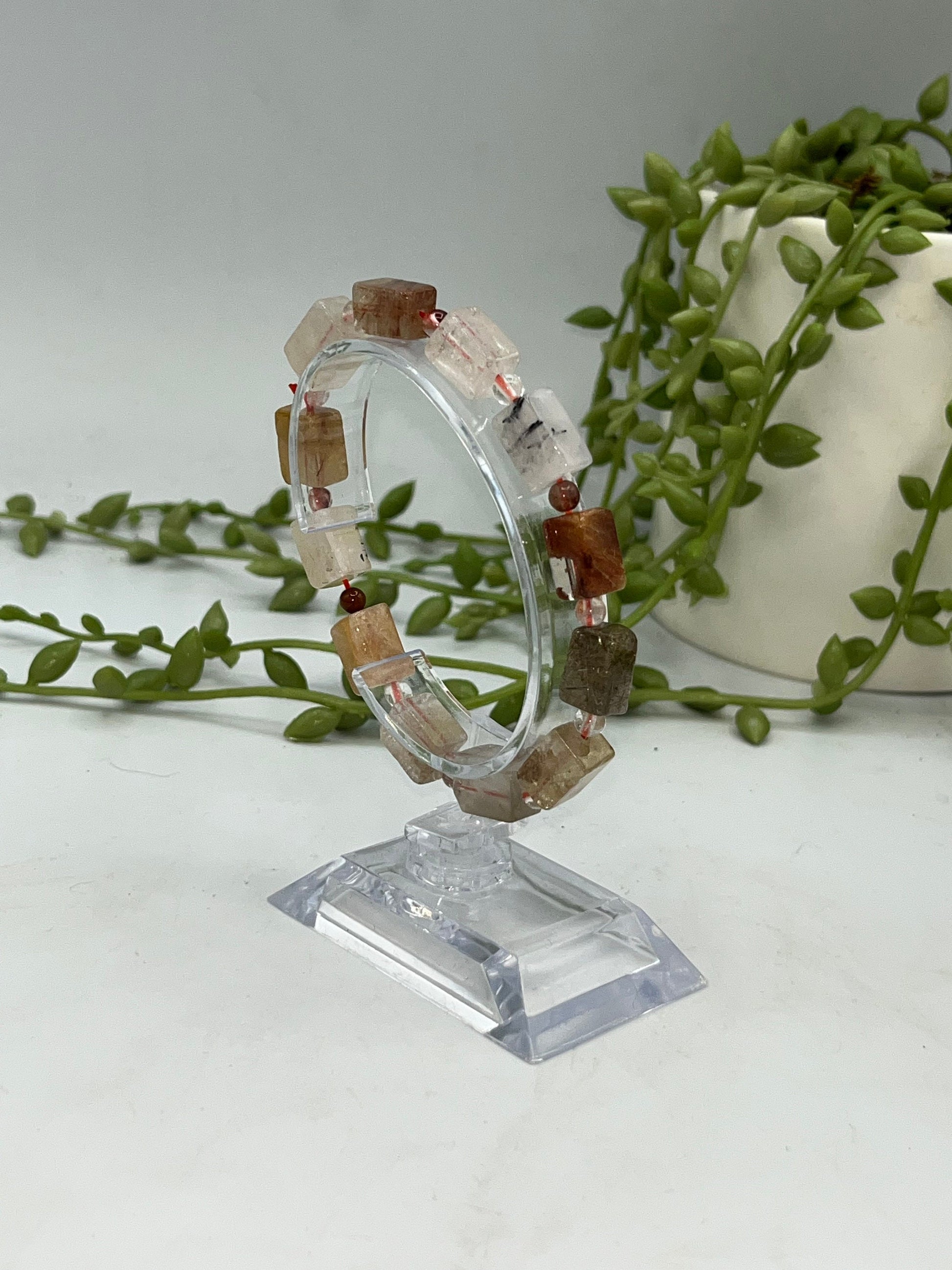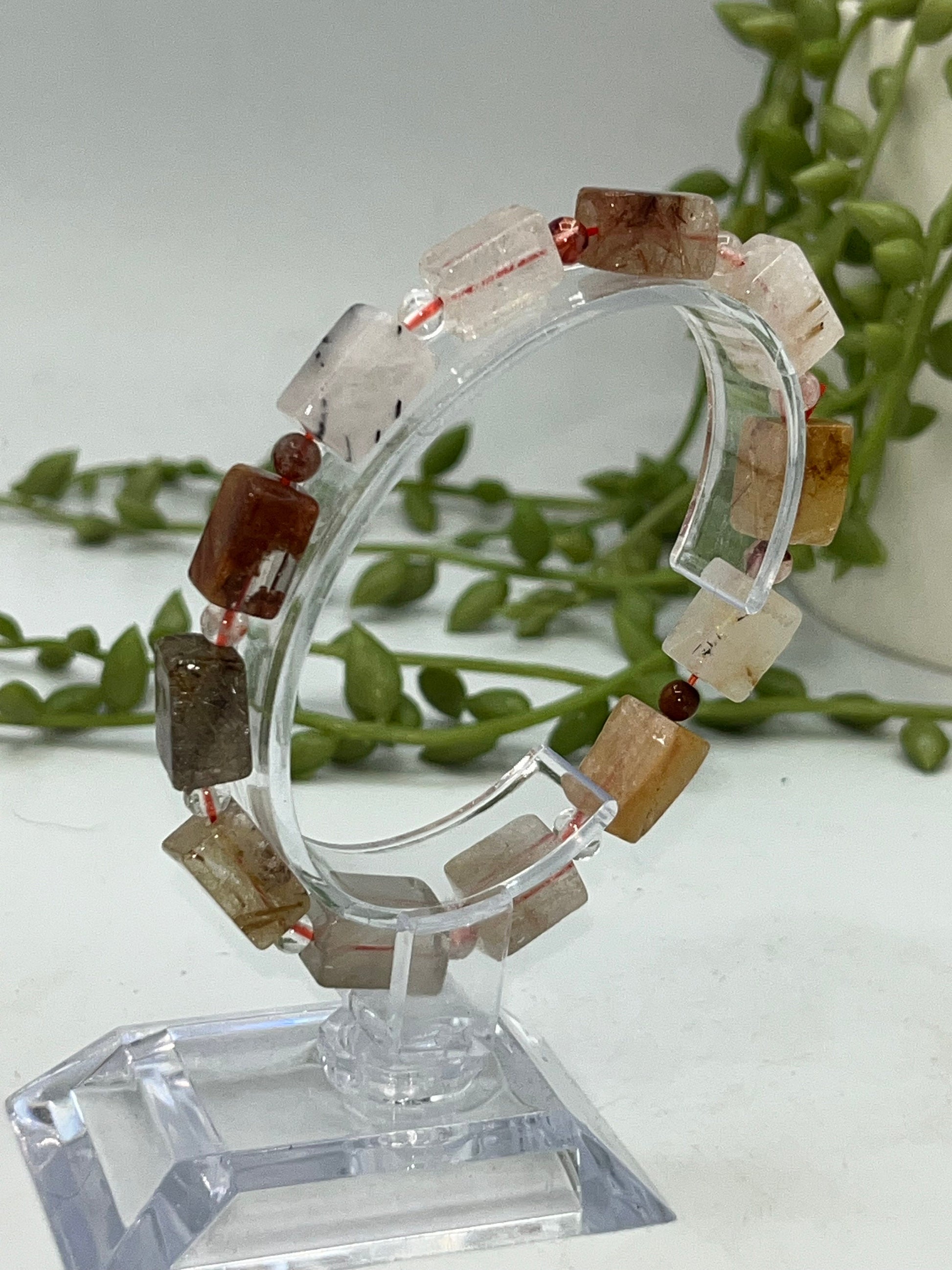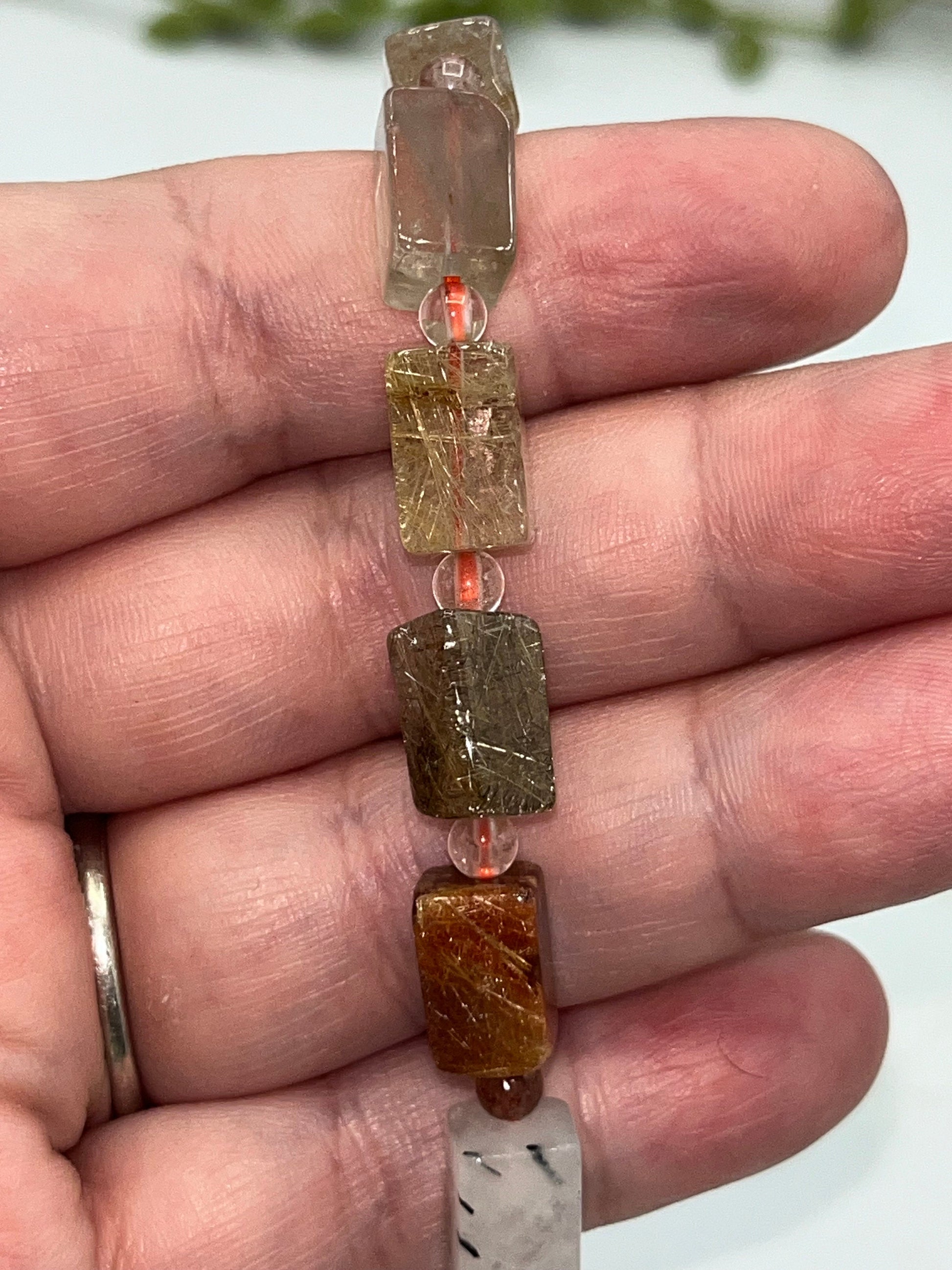 Multicolour Rutilated Quartz Beaded Bracelet. Golden Rutile, Copper Rutile, Green Rutile, White Rutile, Black Tourmaline in Quartz Rutile