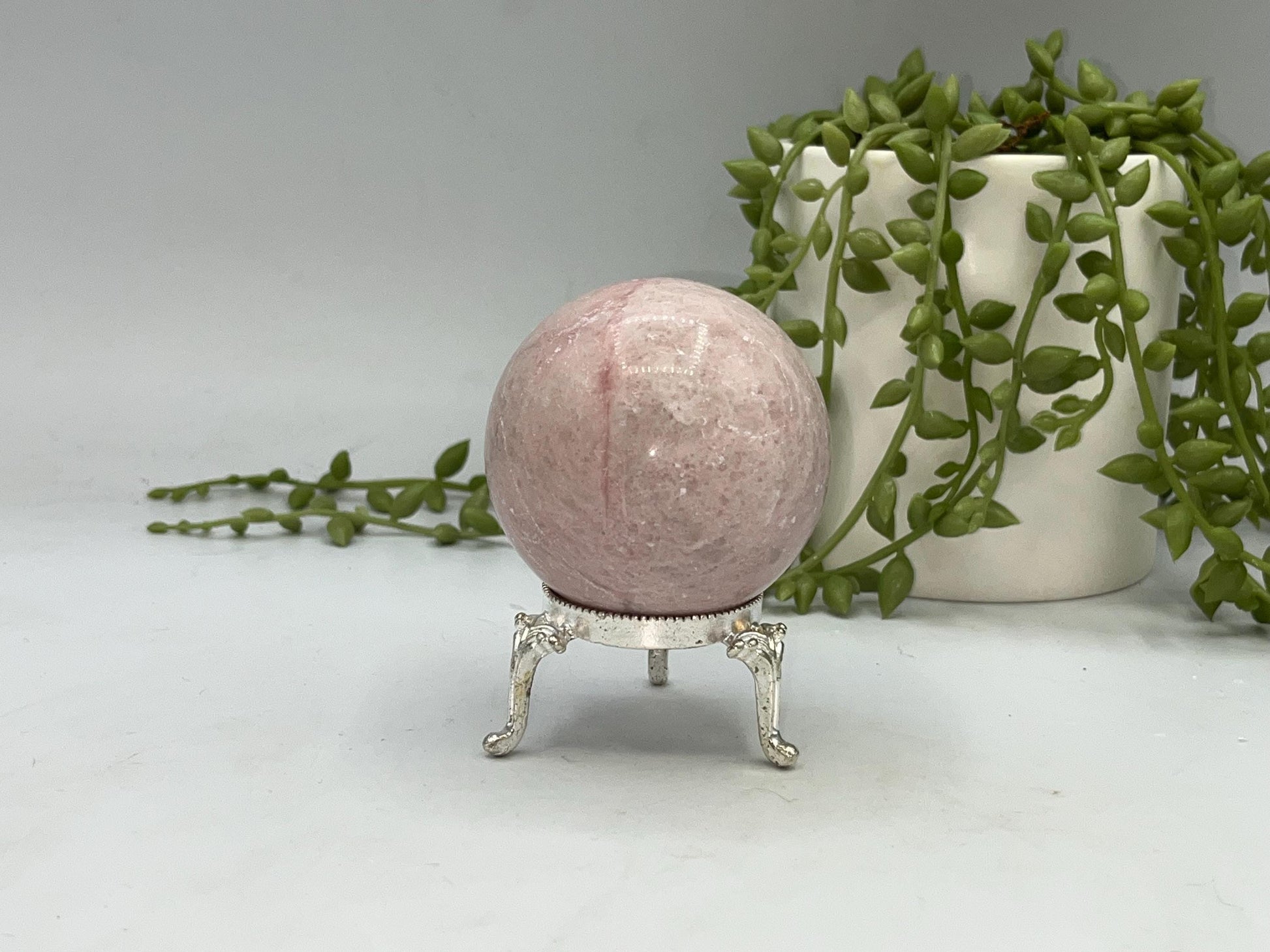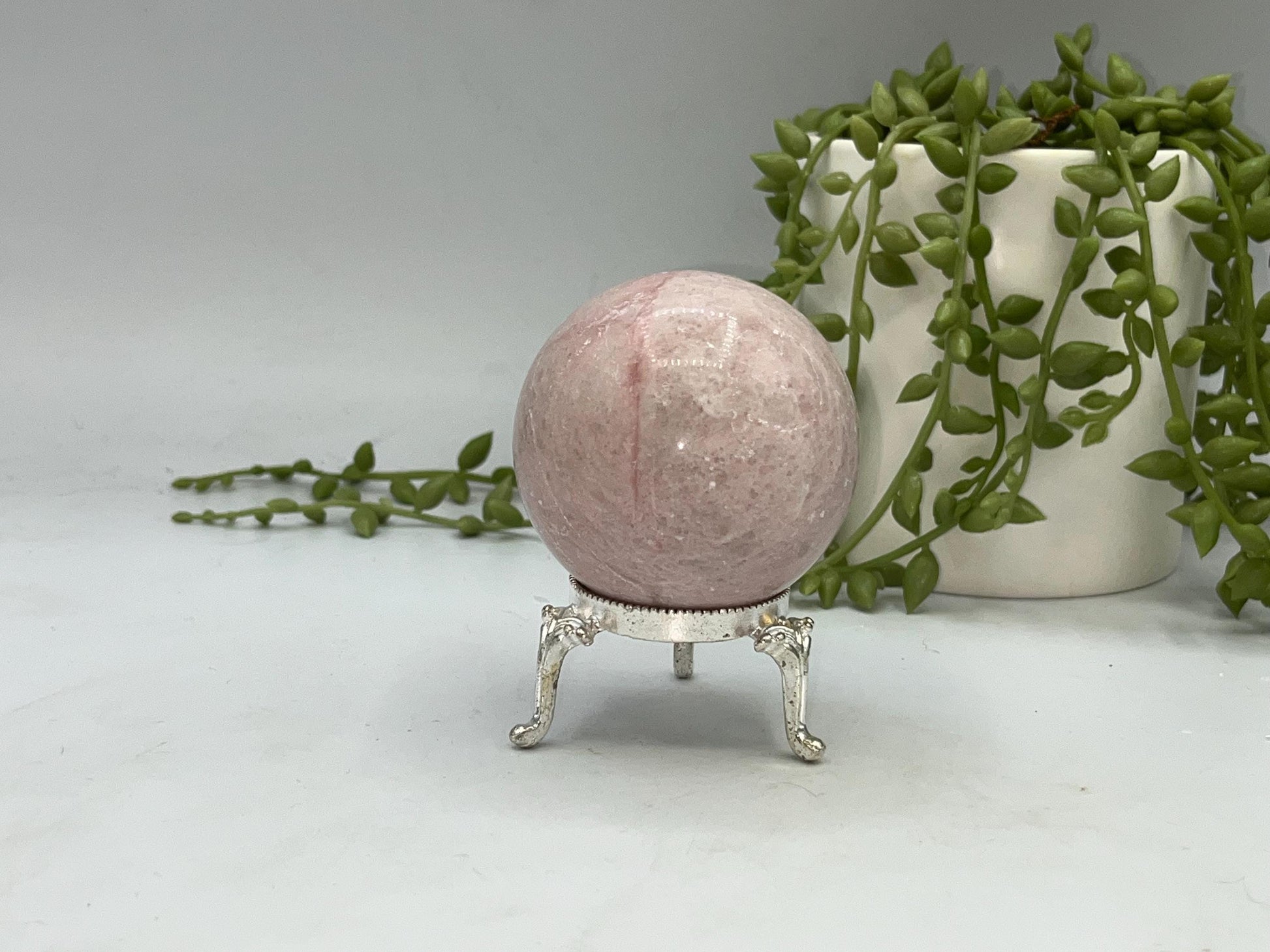 Peruvian Pink Opal sphere, (A) Natural Crystal, 5.6cm in diameter, Peppermint Candy sphere, heart chakra, perfect for anxiety & self healing