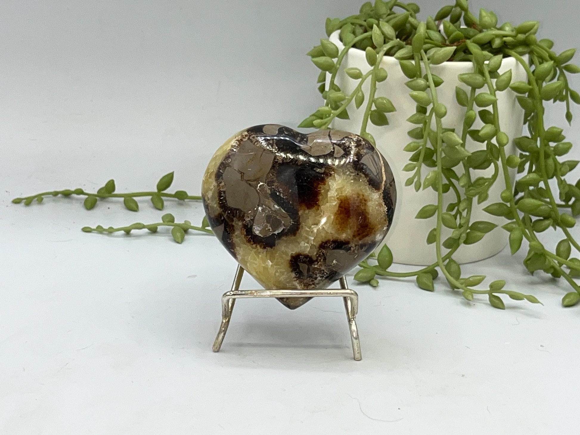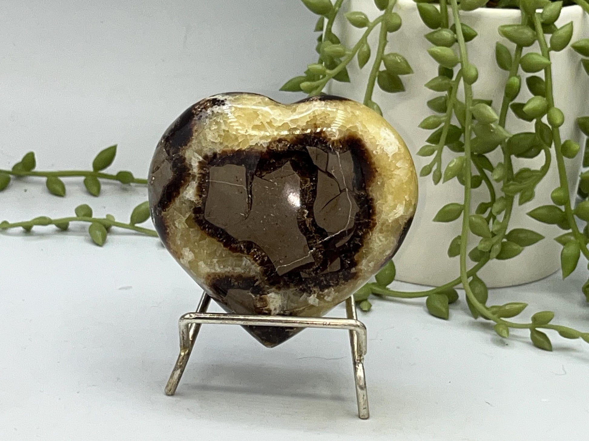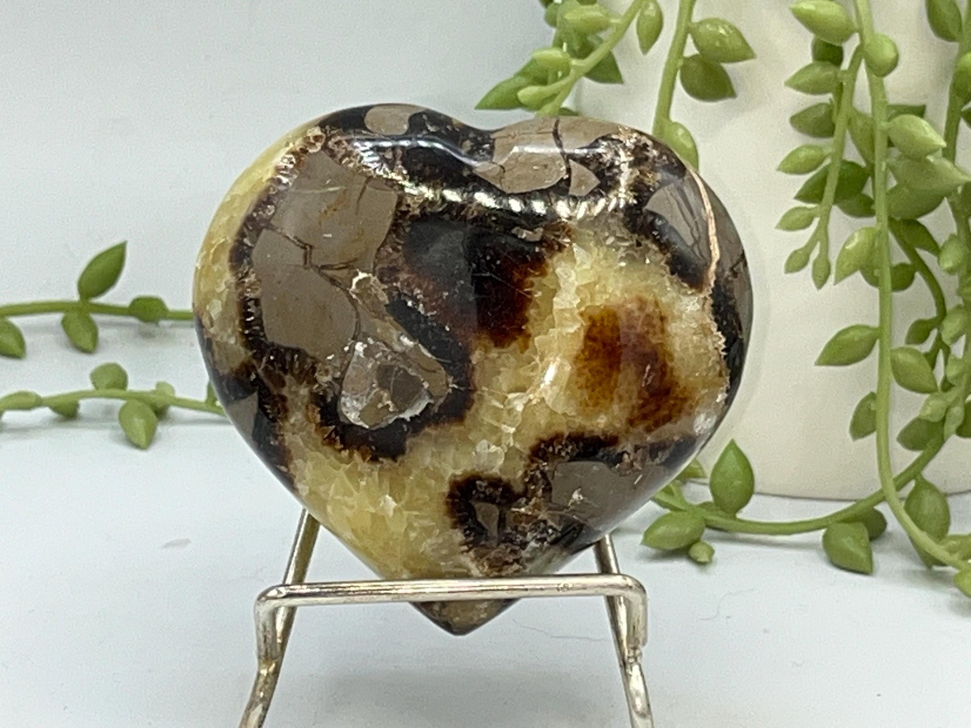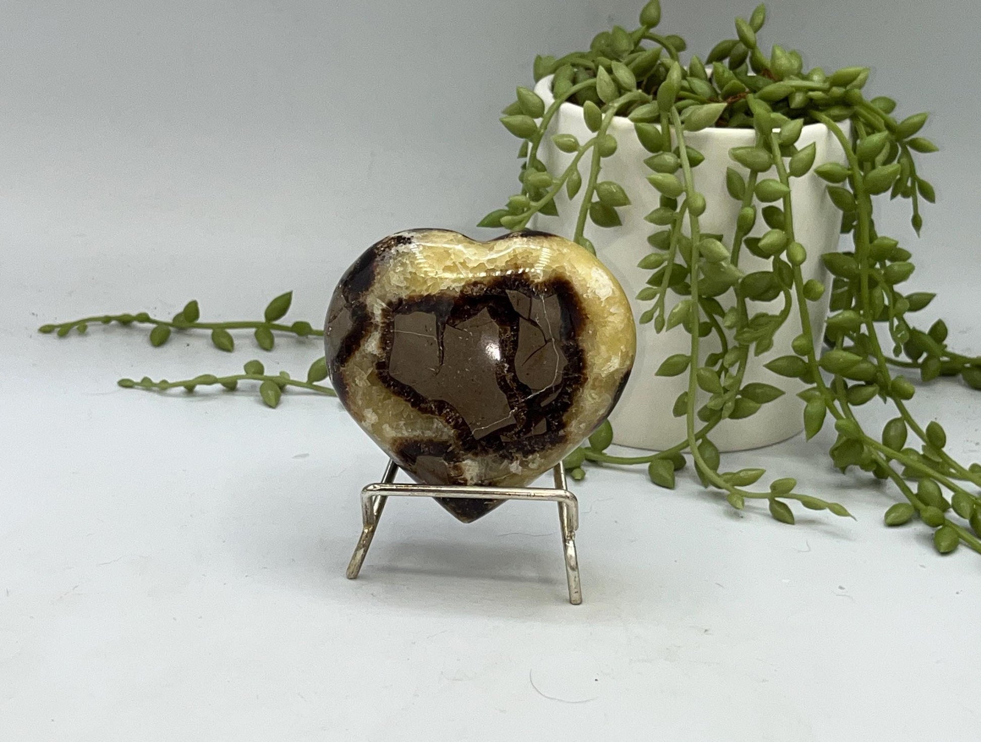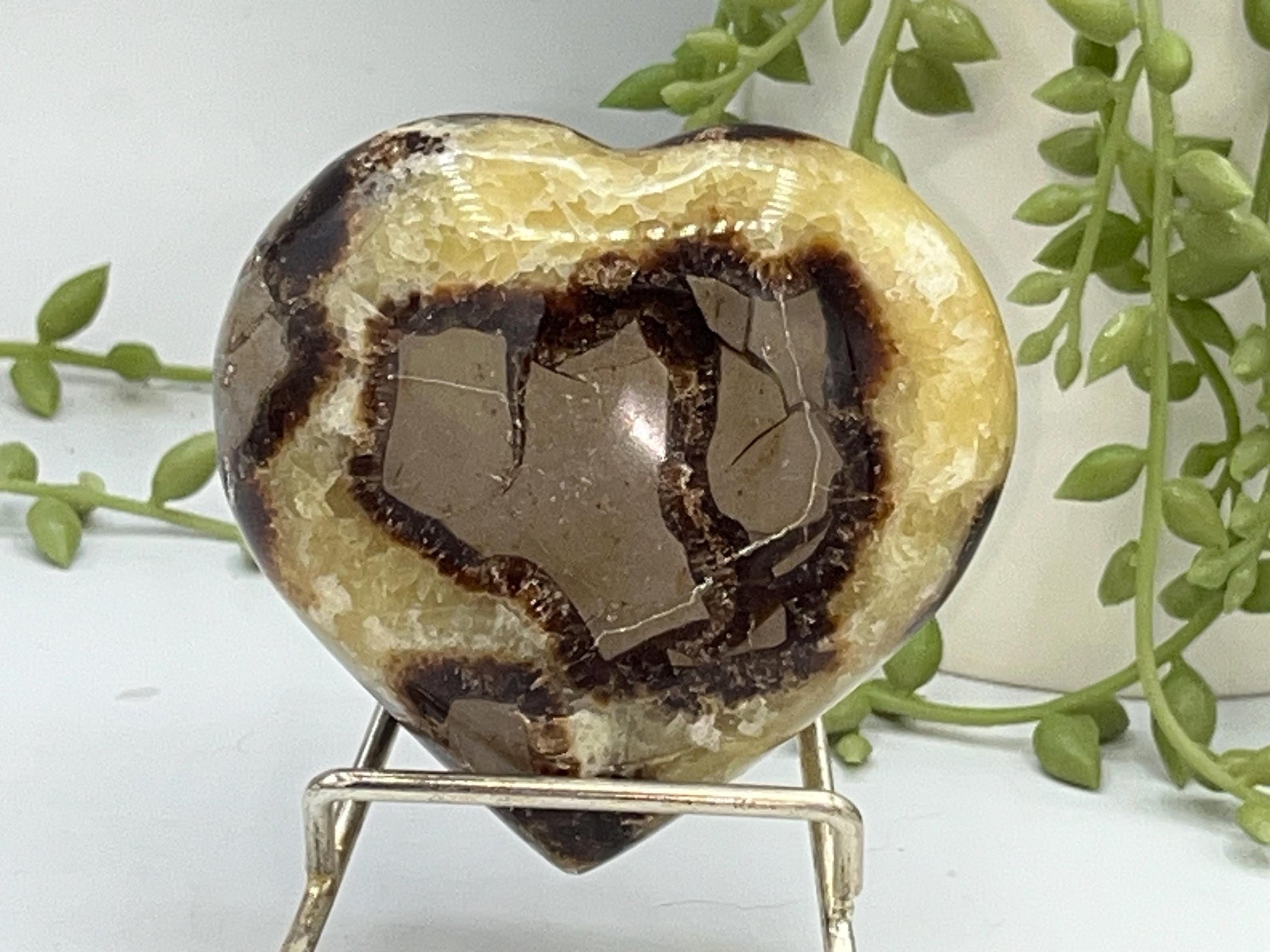 Septarian Crystal Puffed Heart (F,) Dragon Stone, Palm Stone, Yellow Calcite, Aragonite, Limestone, Beetle Stone, Turtle Stone