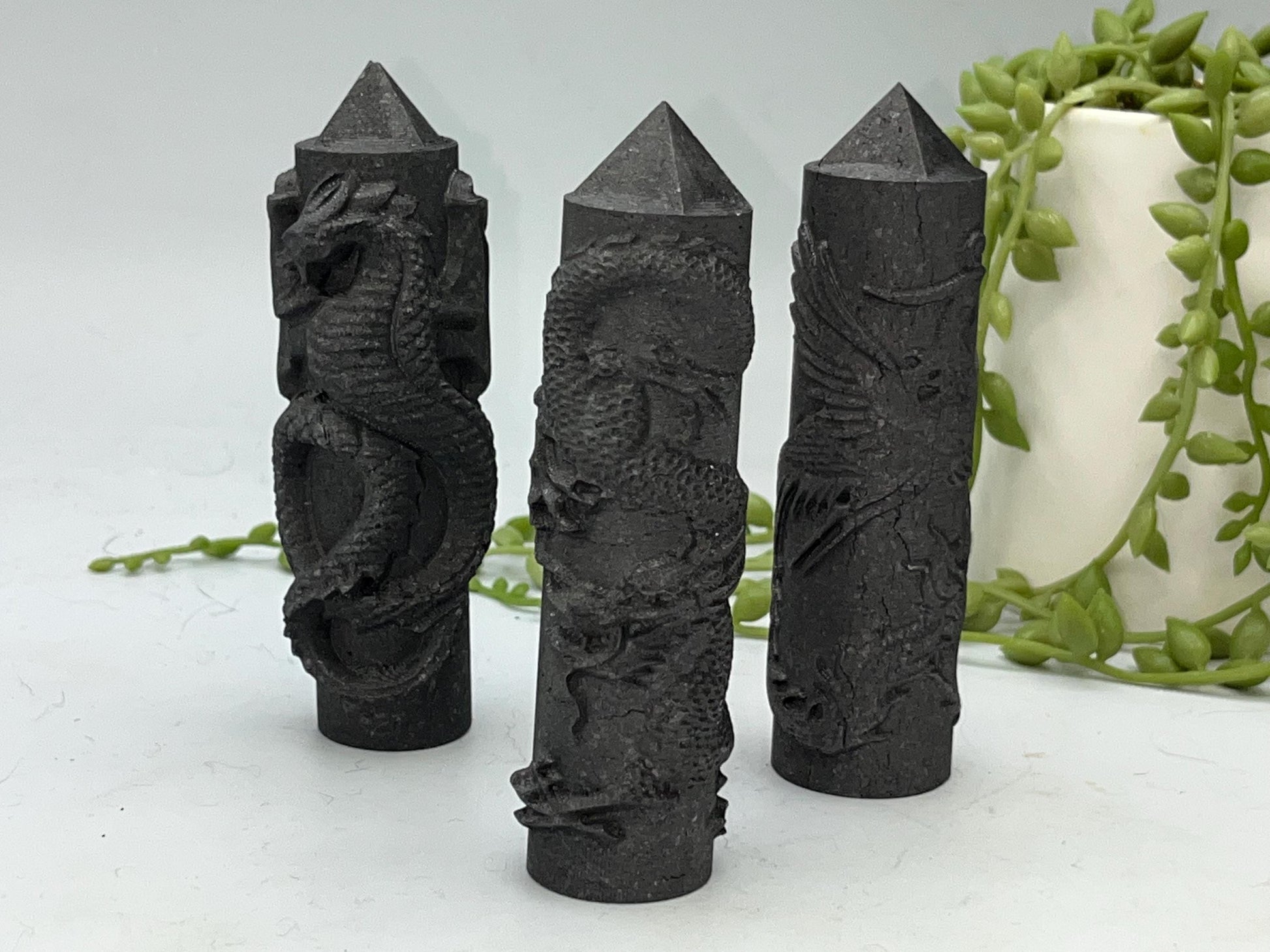 This hand carved Shungite Dragon is a symbol of protection, empowerment and transformation.