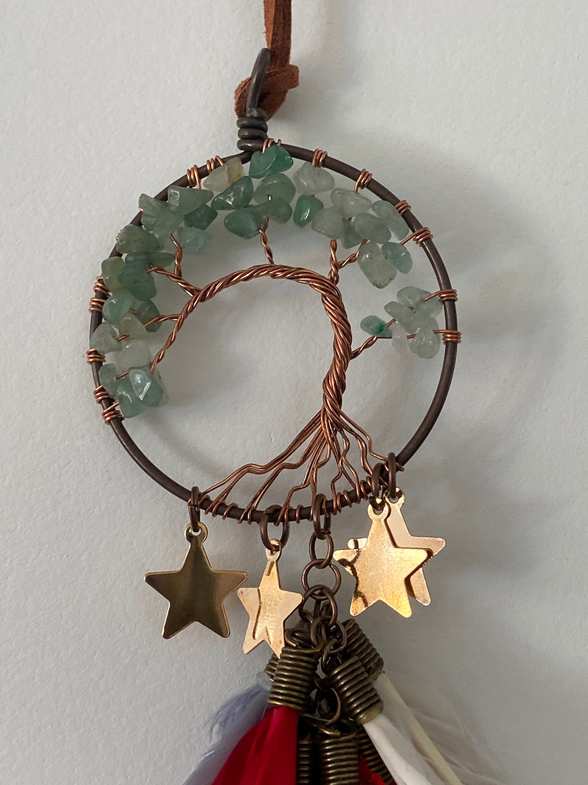 Small green aventurine tree of life dreamcatcher, girly, Boho Bedroom Decor, Nursery Wall Decor, Boho, Bedroom, Room, stars