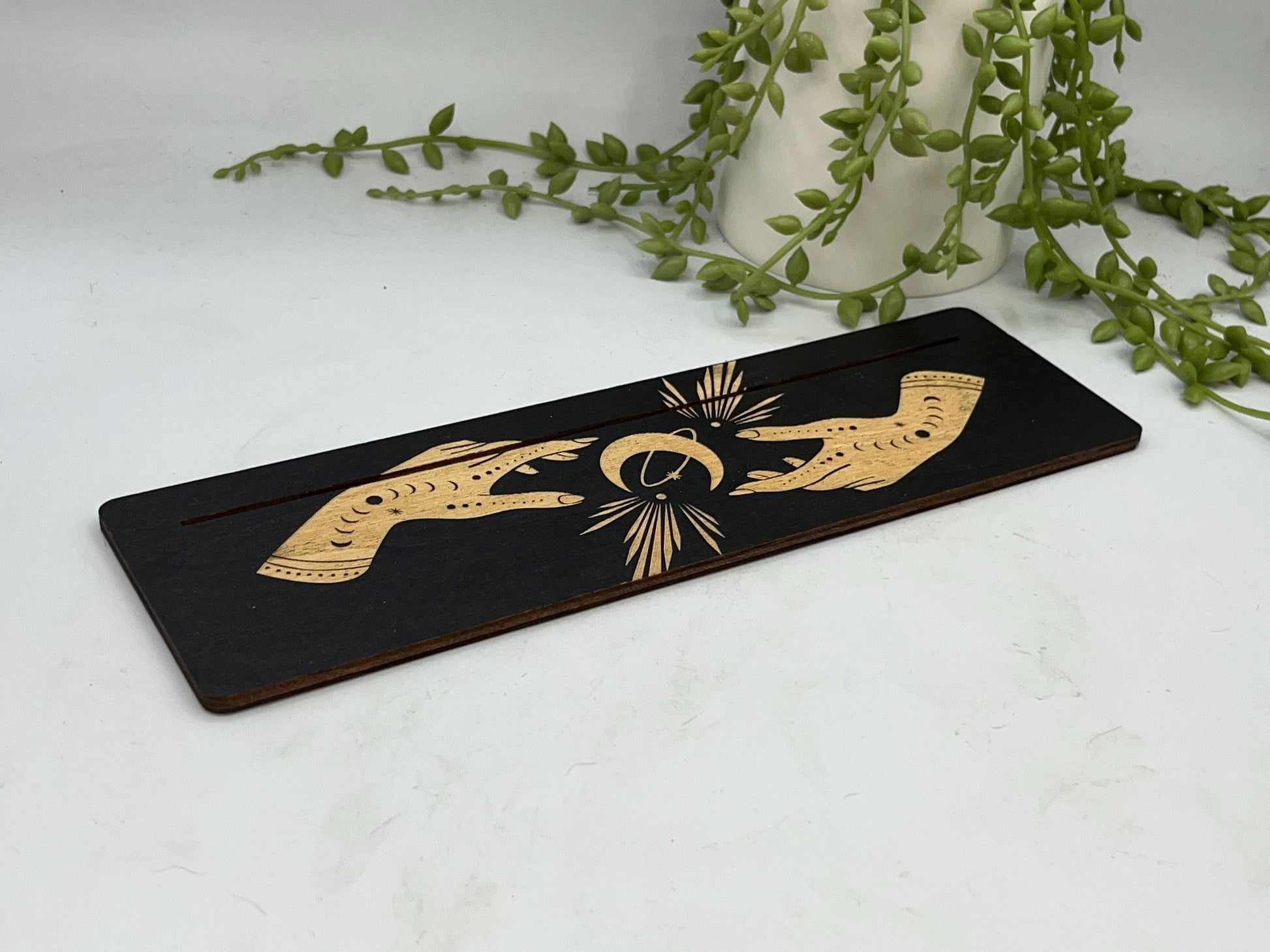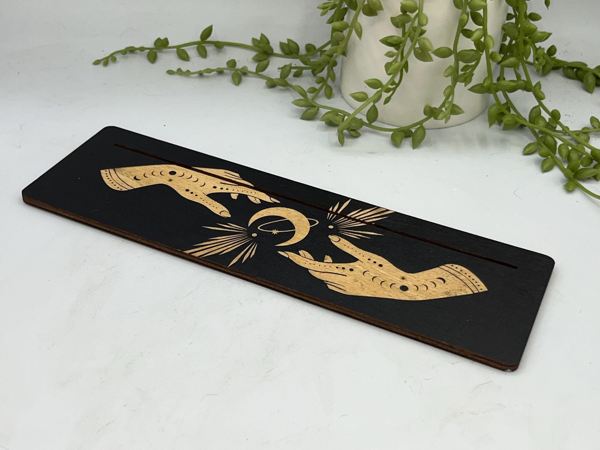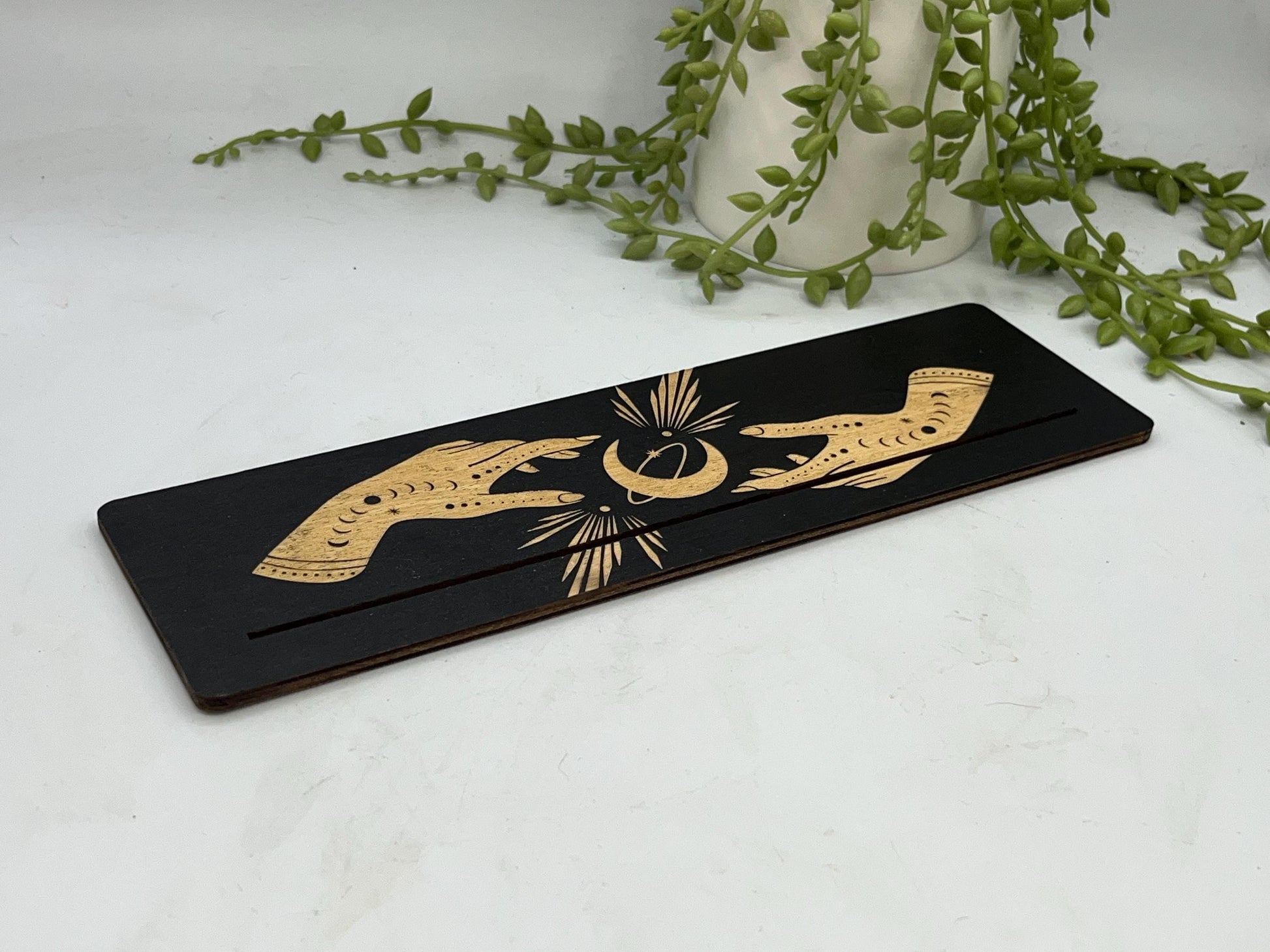 Tarot cards of the day 3 card holder. Wooden mystical hands reaching for the moon tarot/oracle card holder, altar stand, card of day