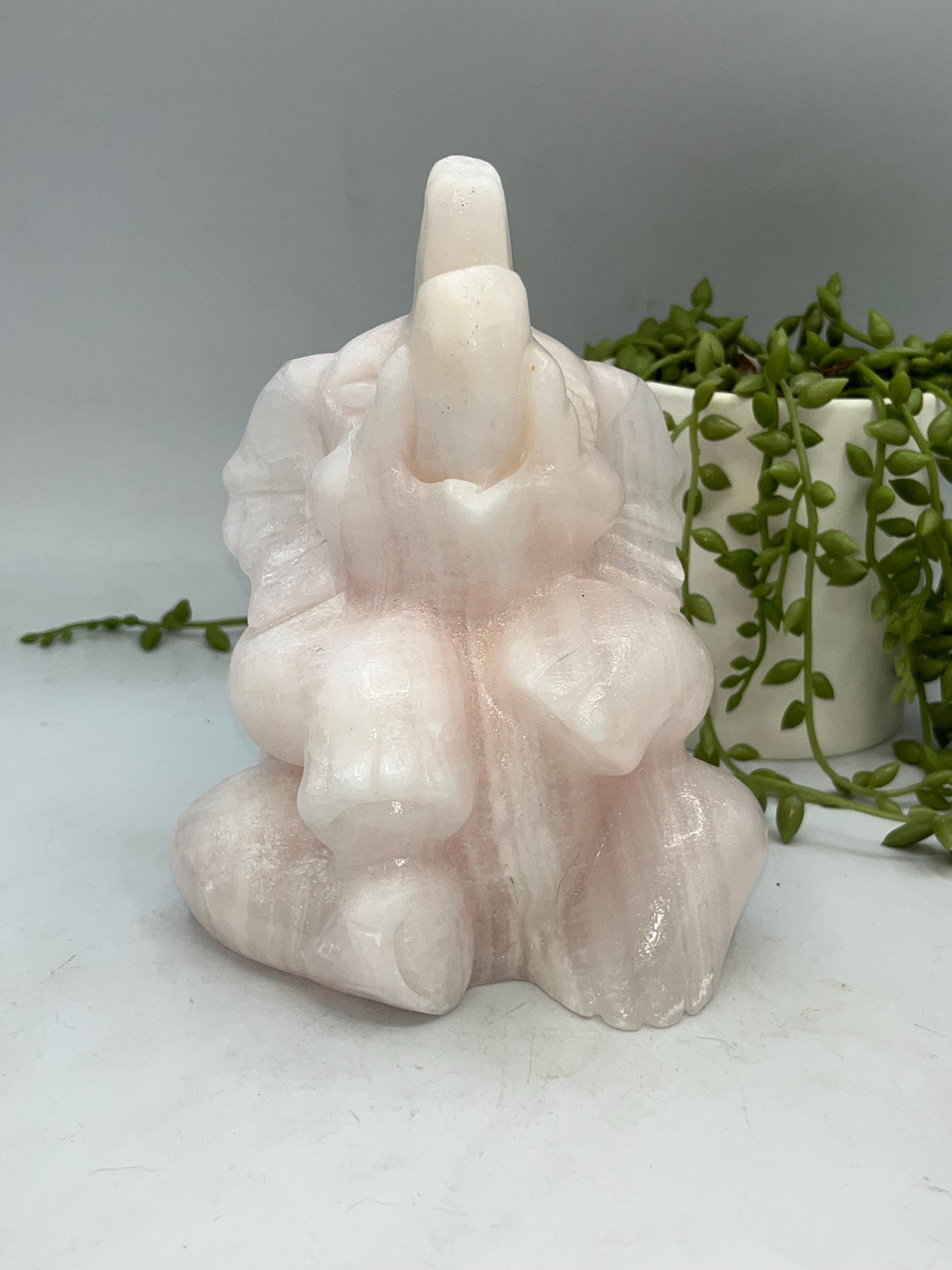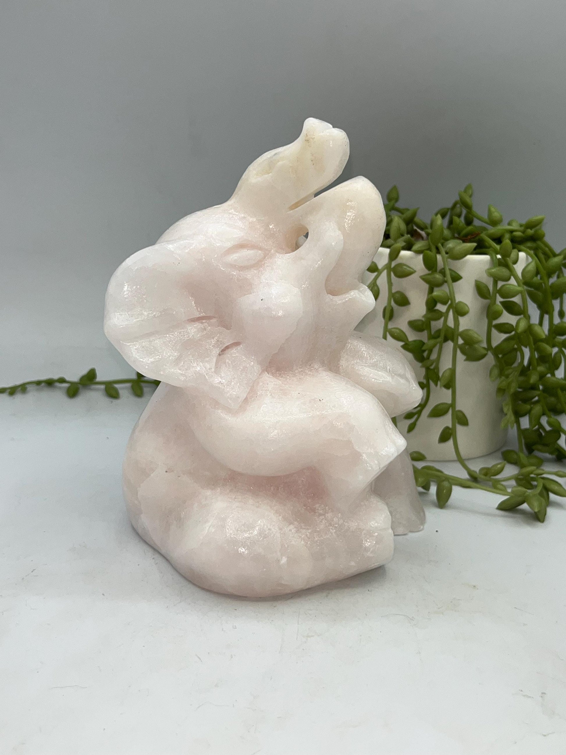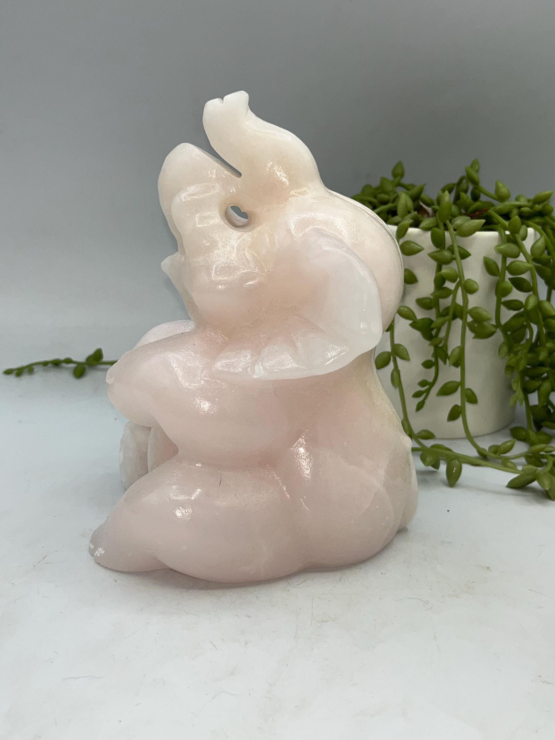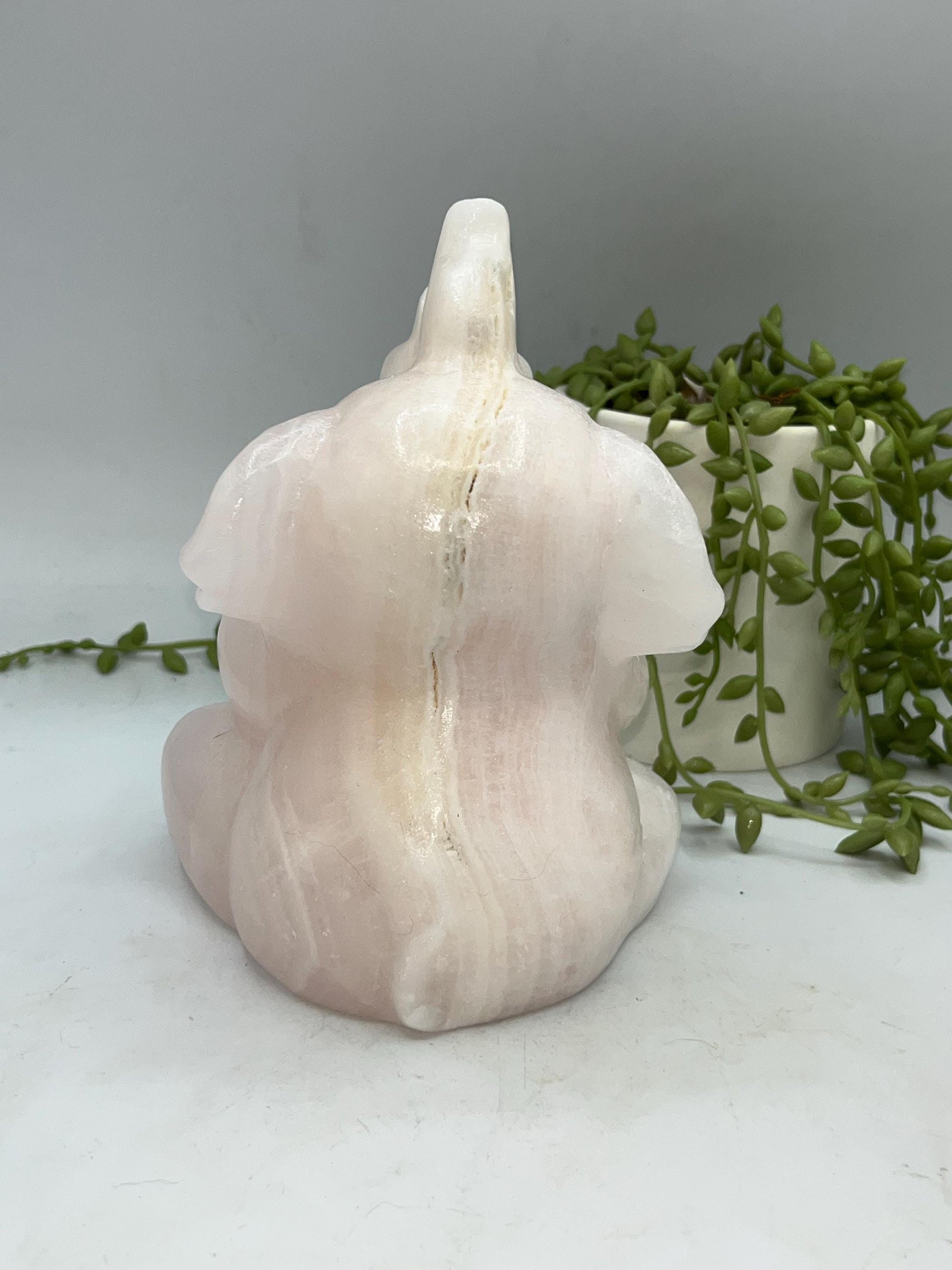 Very Cute Lucky Elephant, Pink Calcite Elephant, Sitting Elephant Carving, Not UV Reactive, Pink Banded Calcite,